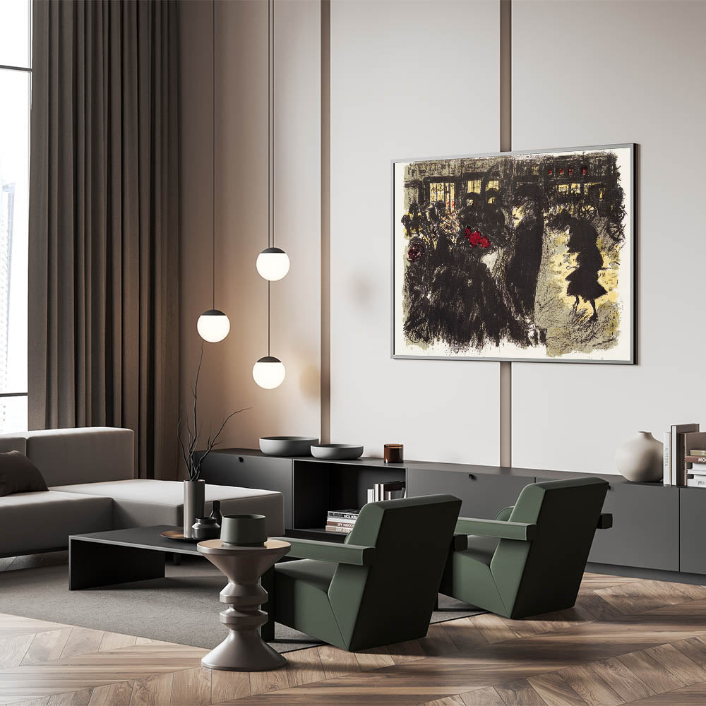 - Printed on high-quality materials such as stretched canvas, framed print, and acrylic glass