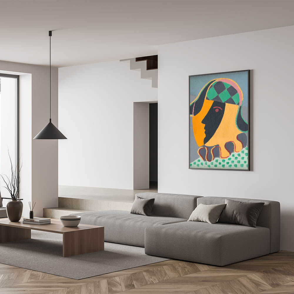 Infuse your home with the playful elegance of Pierrot's Head. This artwork is a celebration of color, movement, and imagination, making it a must-have for art enthusiasts looking to elevate their decor.