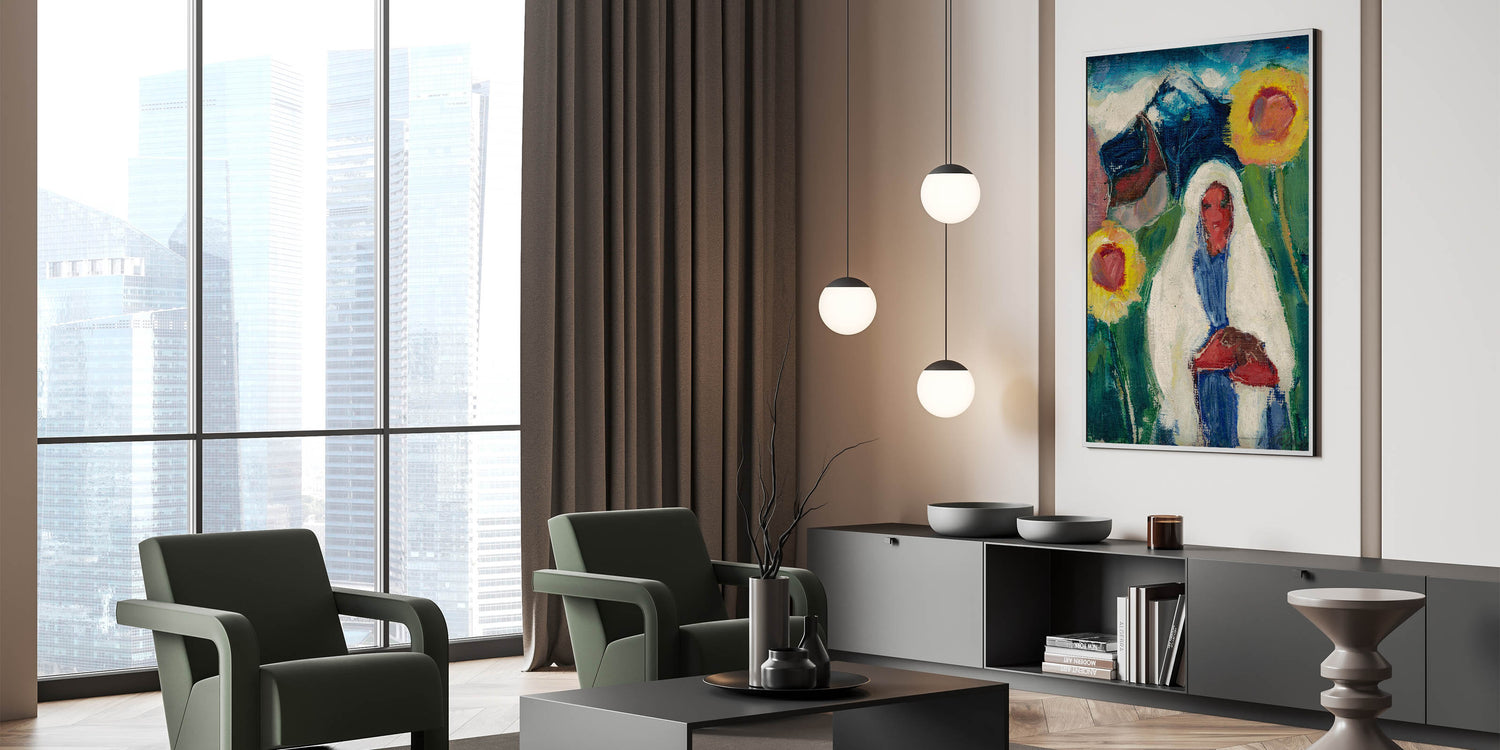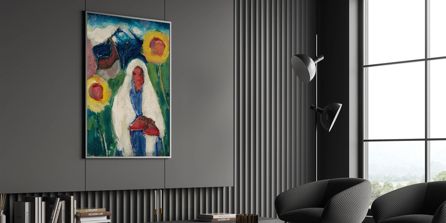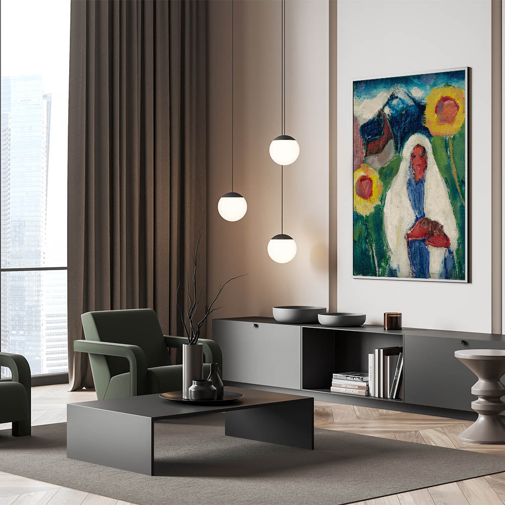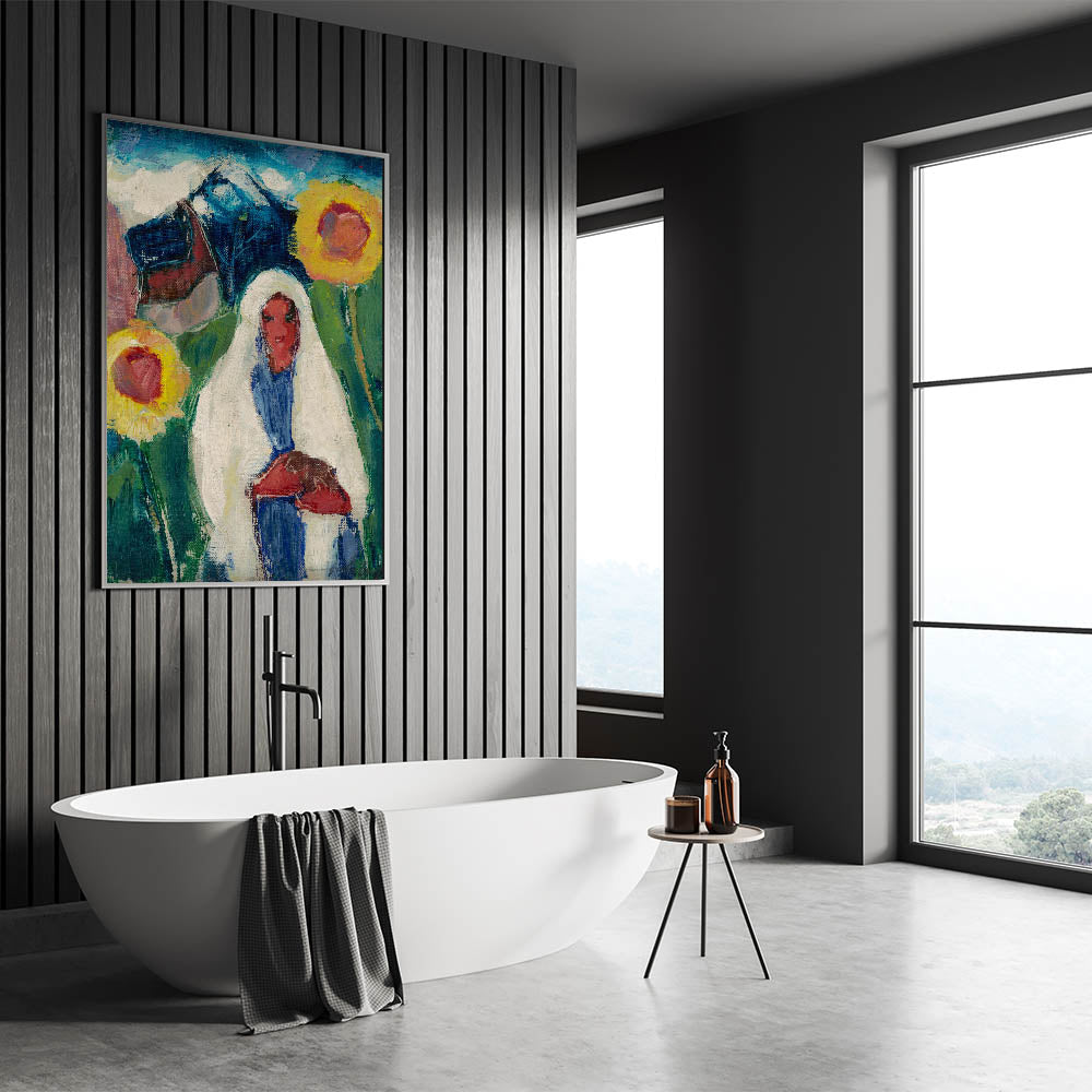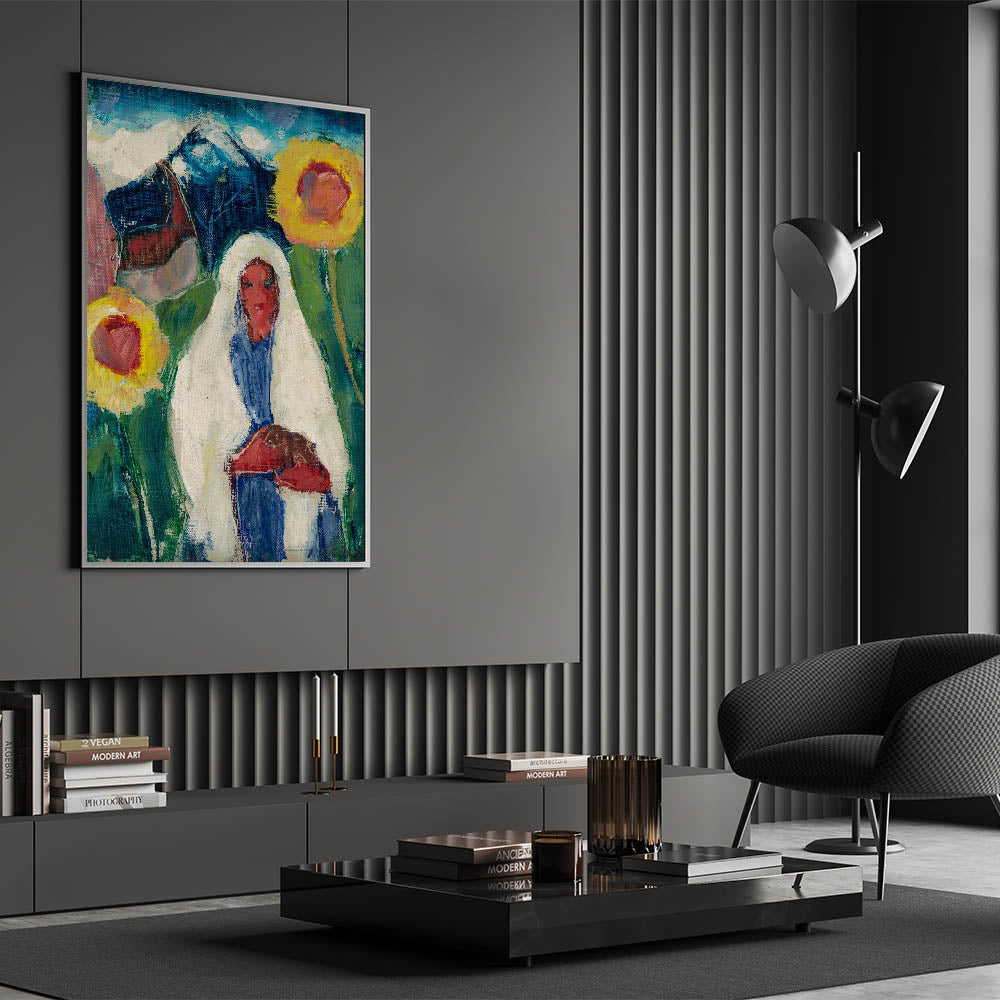Abstract Sunflowers and Woman - Modern Colorful Wall Art Design