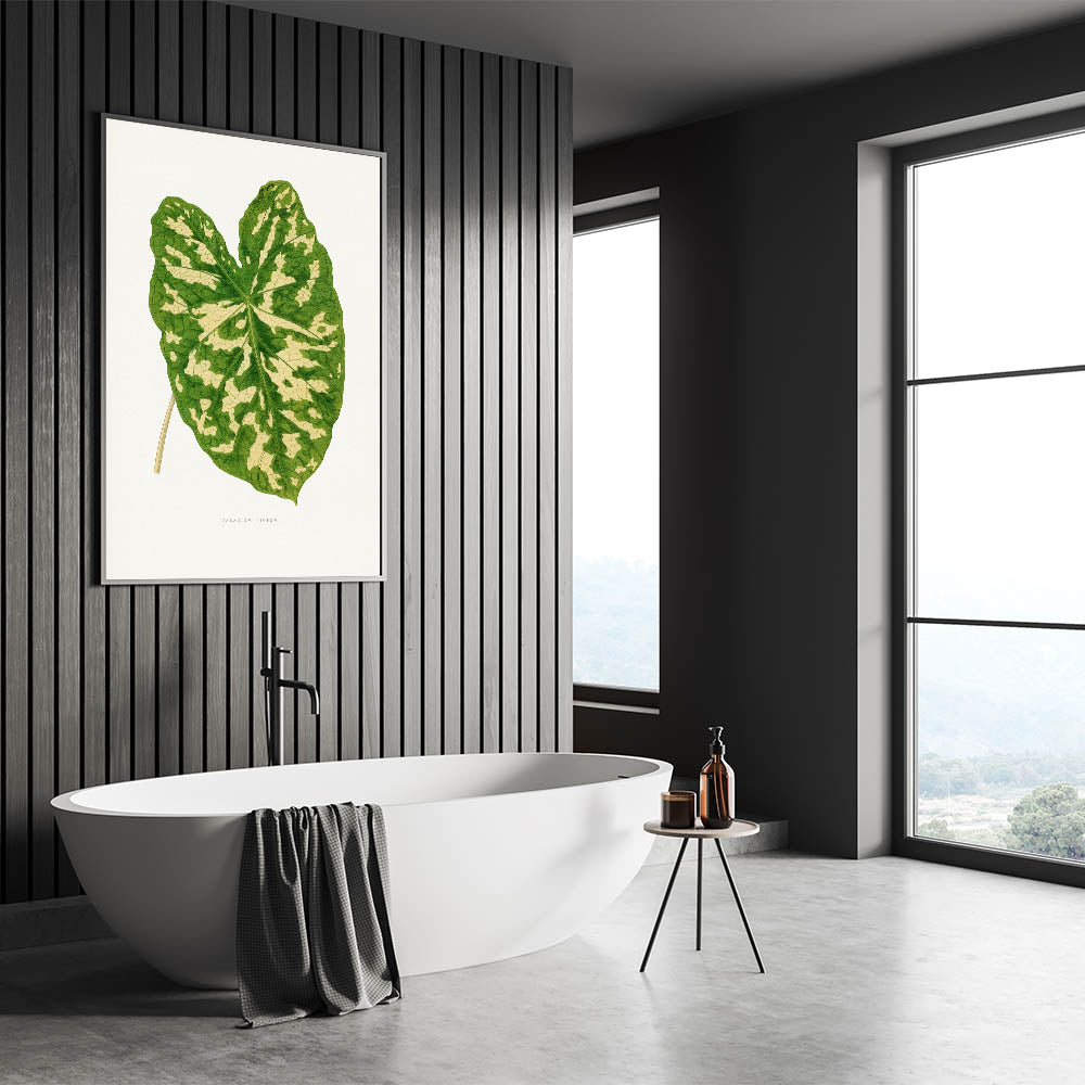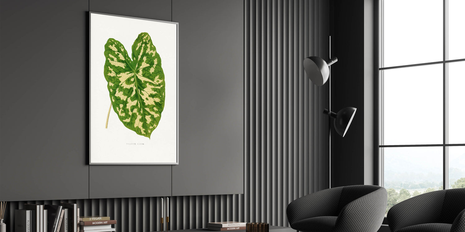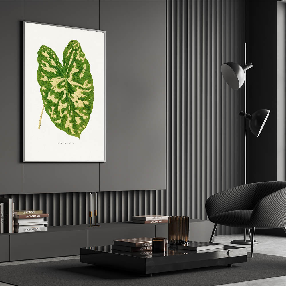 Enhance your decor with this elegant Romanticism-inspired botanical artwork, featuring the stunning Caladium Pictum Leaf. Originally crafted in the 1865 edition of Les Plantes à Feuillage Coloré, this illustration highlights the intricate beauty of nature with remarkable precision and artistry. Its vibrant greens and soft beige tones make it a perfect centerpiece for both modern and classic interiors.
