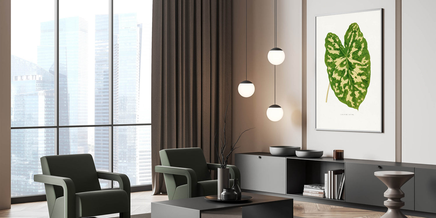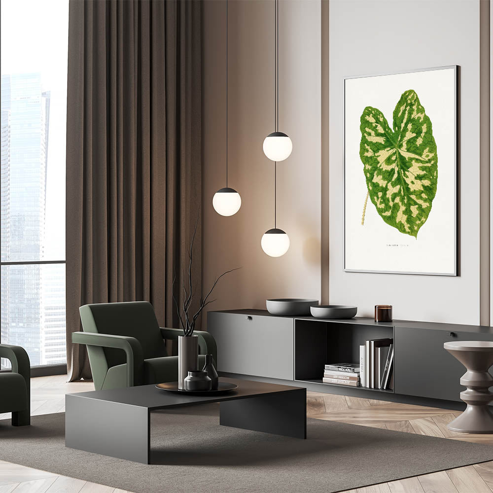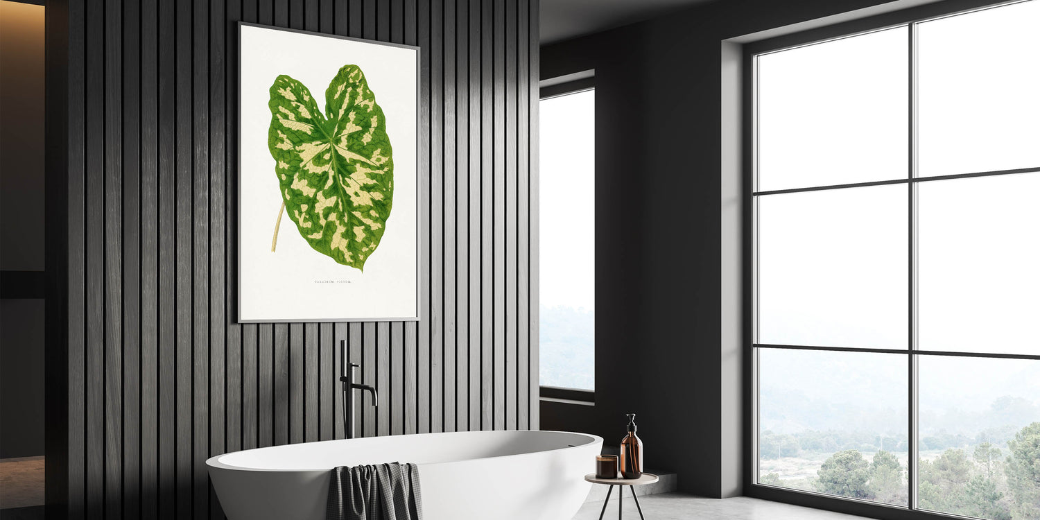 Enhance your decor with this elegant Romanticism-inspired botanical artwork, featuring the stunning Caladium Pictum Leaf. Originally crafted in the 1865 edition of Les Plantes à Feuillage Coloré, this illustration highlights the intricate beauty of nature with remarkable precision and artistry. Its vibrant greens and soft beige tones make it a perfect centerpiece for both modern and classic interiors.