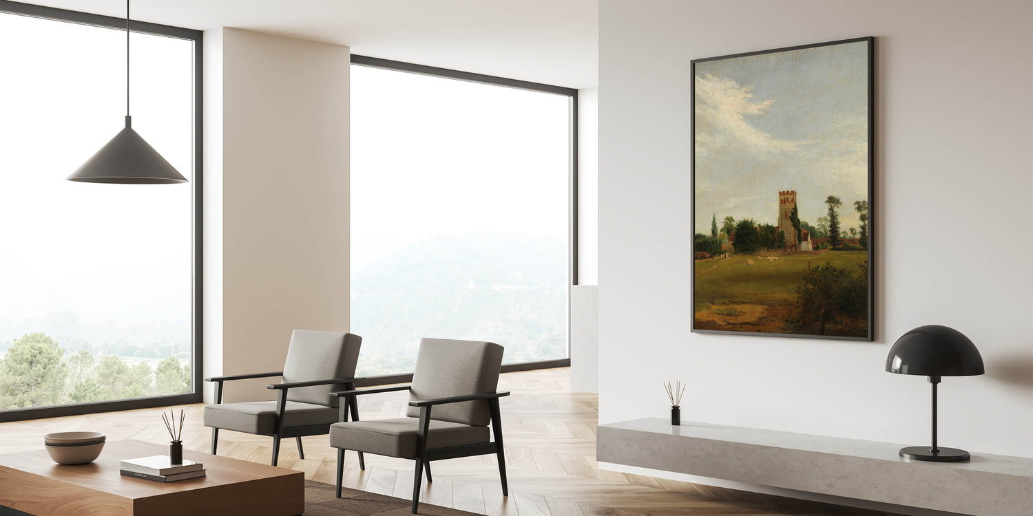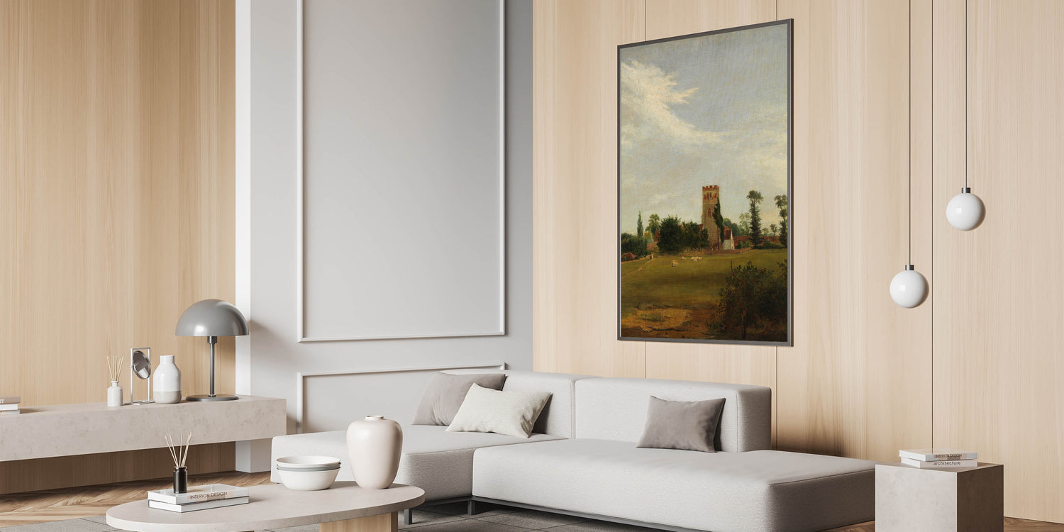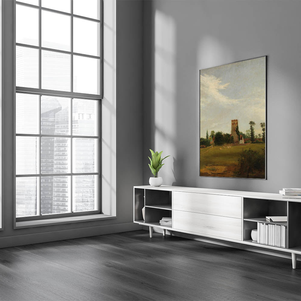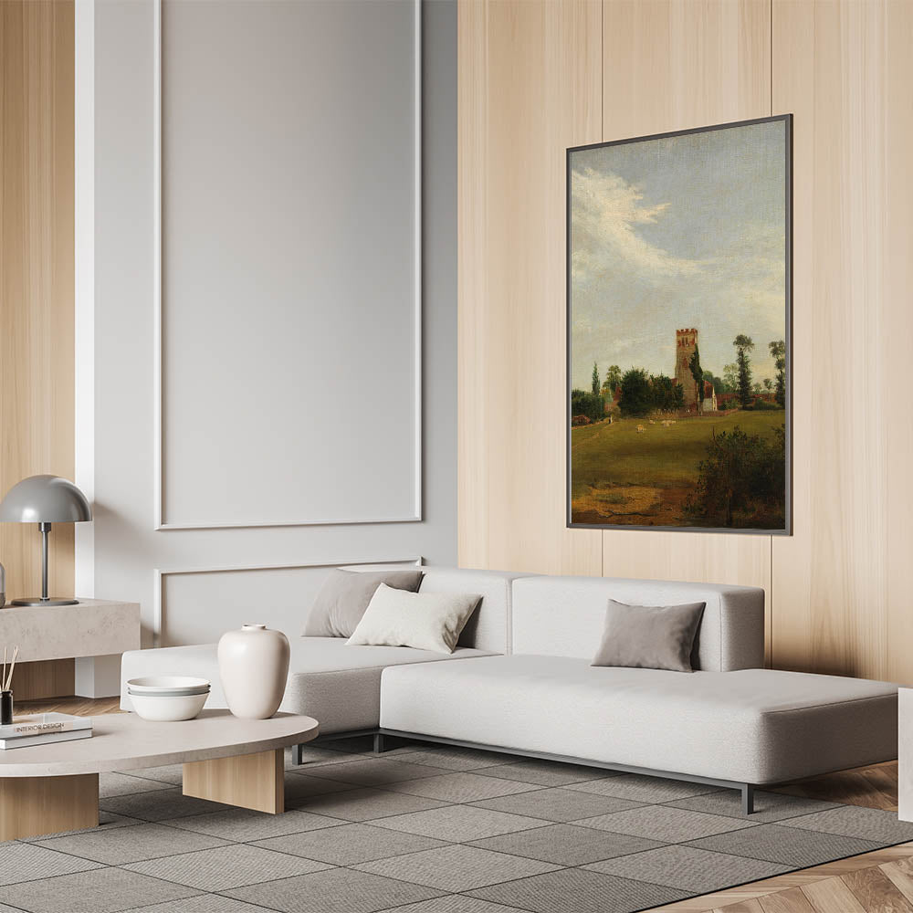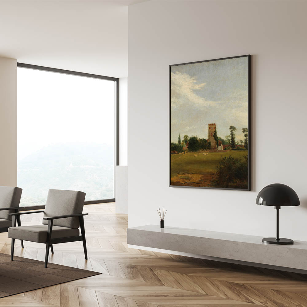 Capture the essence of pastoral tranquility with this exquisite Realism art print featuring Tottenham Church. This artwork beautifully depicts the idyllic countryside, with its historic tower framed by lush trees and grazing sheep, inviting a sense of peace and nostalgia. Ideal for those seeking Realism Art Prints for Home Decor, this piece brings a timeless charm to any living space.