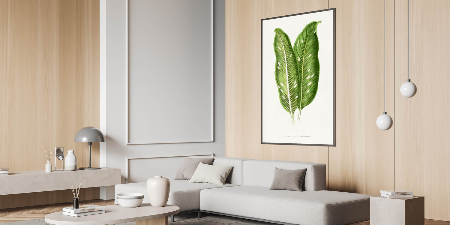 Classic Romantic Art: Green Dieffenbachia Leaf Illustration Print