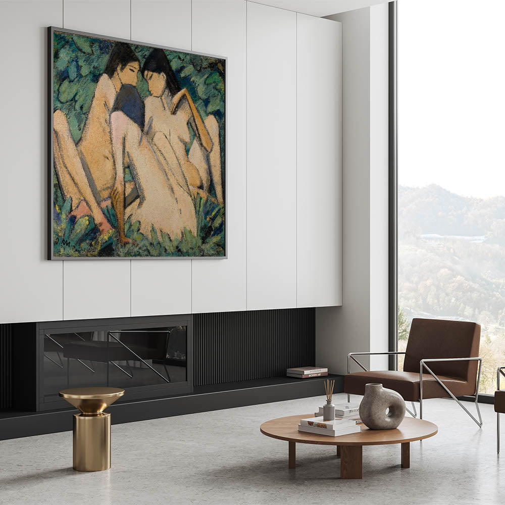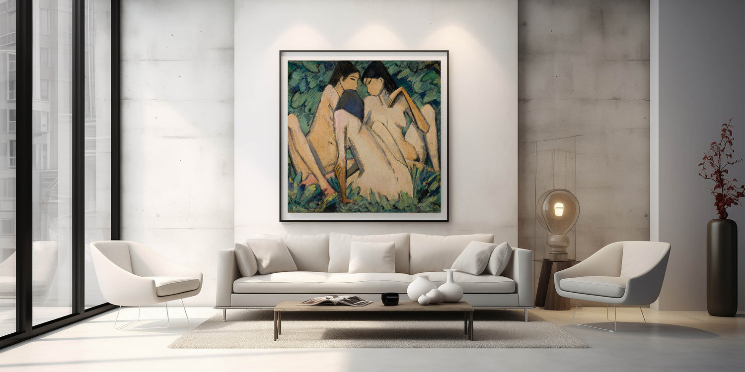 This realism art print is a timeless addition for anyone who appreciates the harmony between human figures and the natural world. Perfect for elevating your decor with a touch of elegance and intimacy, it invites viewers to find peace and connection within their surroundings.