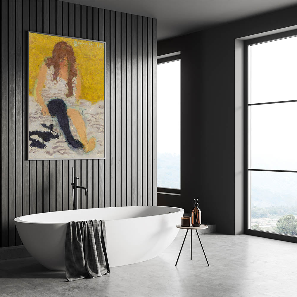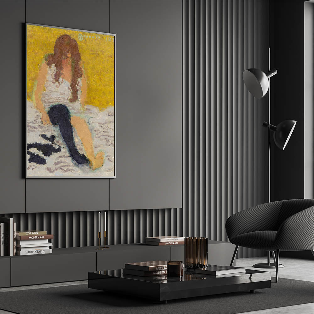 Embrace the intimacy and simplicity of this Realism painting featuring a woman putting on her stockings. This art print captures a quiet, candid moment in warm, earthy tones, with a focus on the woman’s relaxed posture and serene expression. The subtle details and textured brushstrokes bring a sense of softness and warmth, making it a beautiful addition to your home decor. This piece embodies timeless elegance and everyday beauty, perfectly suited for those who appreciate classical Realism.