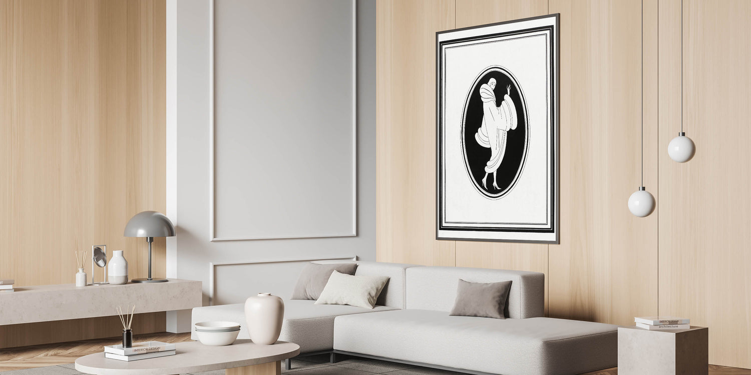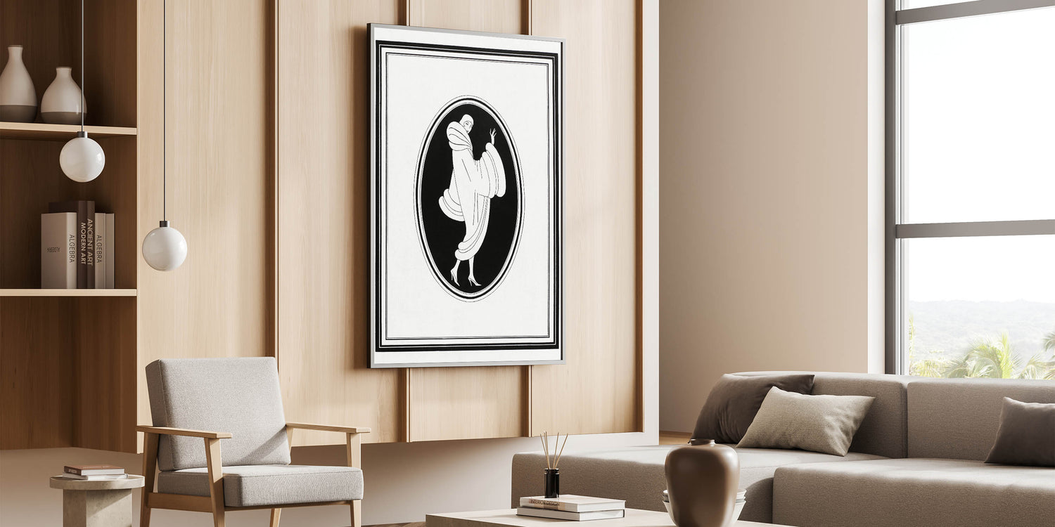 This Art Deco-inspired artwork is perfect for those who appreciate minimalist design with a vintage twist. It brings a sense of elegance and style, making it a great focal point in a living room, bedroom, or office space.