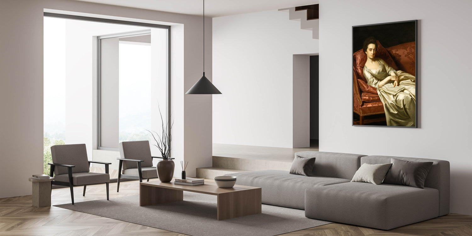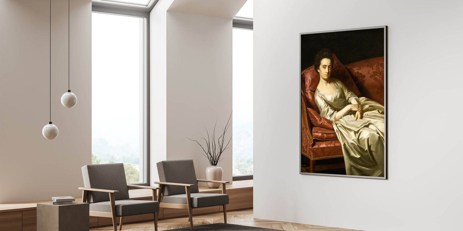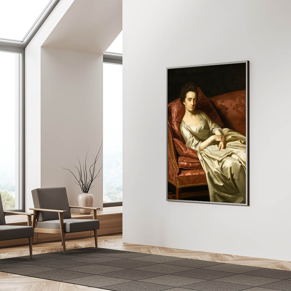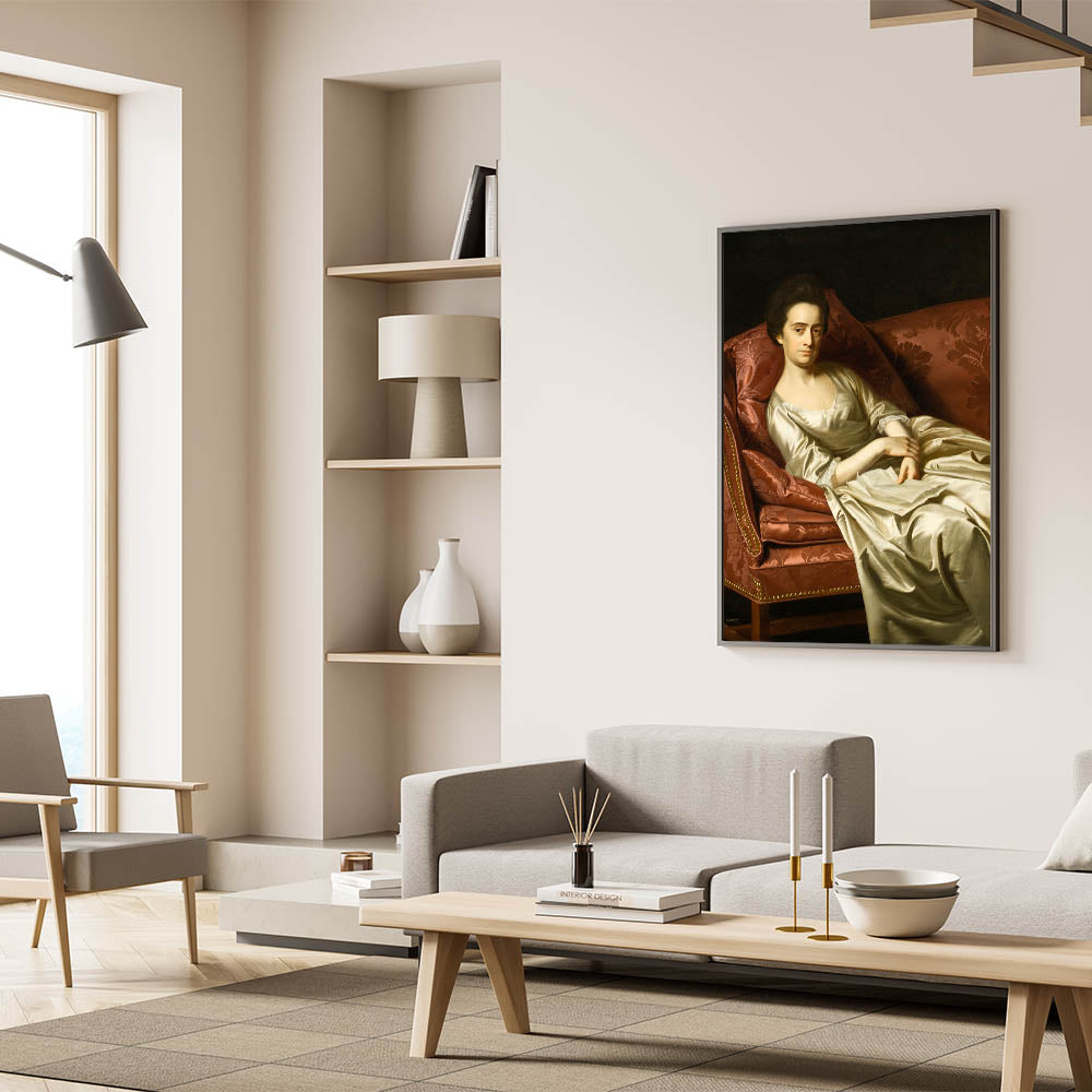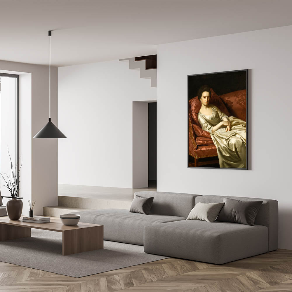 This exquisite Realism art print, "Portrait of a Lady" by John Singleton Copley, captures the grace and poise of a refined woman elegantly reclining on a richly upholstered sofa. The artist’s meticulous attention to detail and mastery of light and shadow bring depth and life to the figure, highlighting her composed expression and delicate attire. Copley’s talent for realism shines in the rich textures of the fabric and the lifelike rendering of the subject, making this artwork a timeless addition to any sophisticated interior.