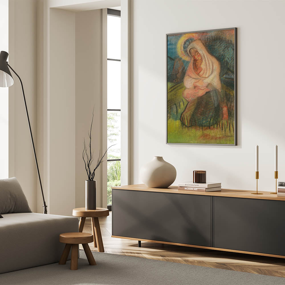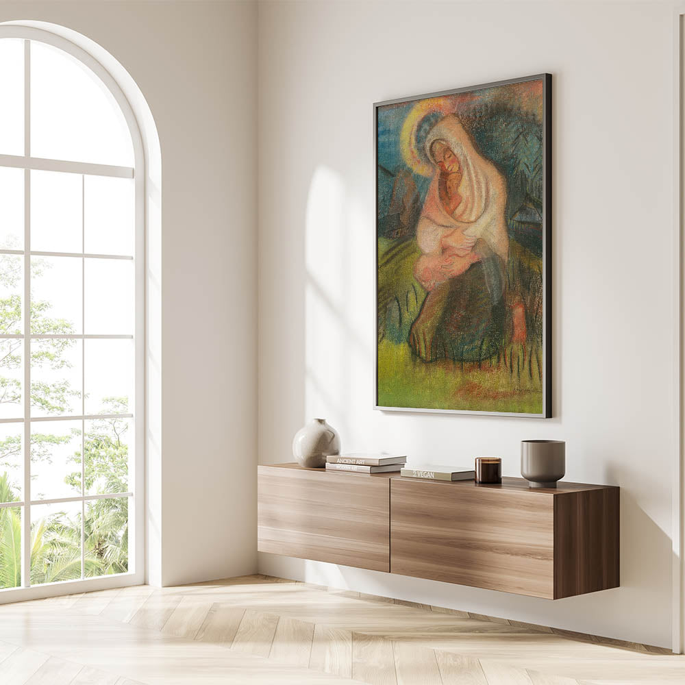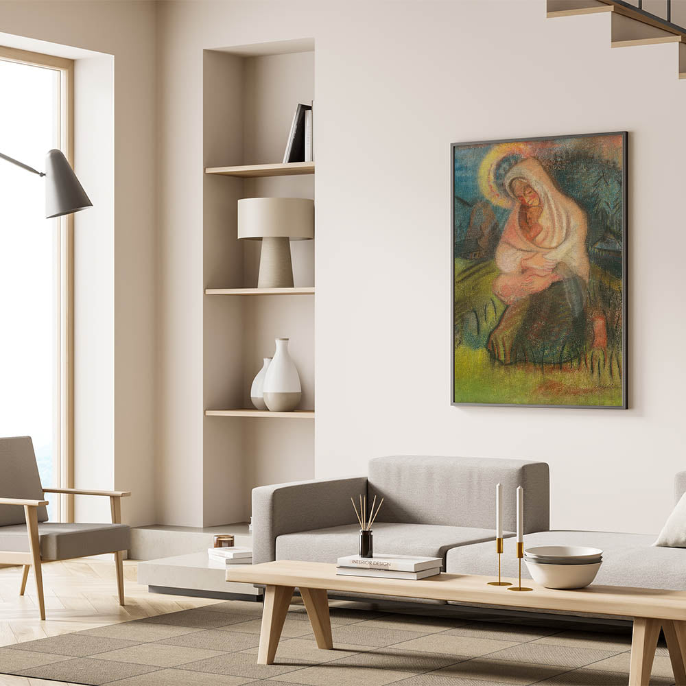This Colorful Expressionist Artwork radiates tranquility and love, making it ideal for enhancing any interior space. Its earthy palette and emotional depth offer an inviting charm, perfect for those seeking to bring warmth and artistry into their homes.