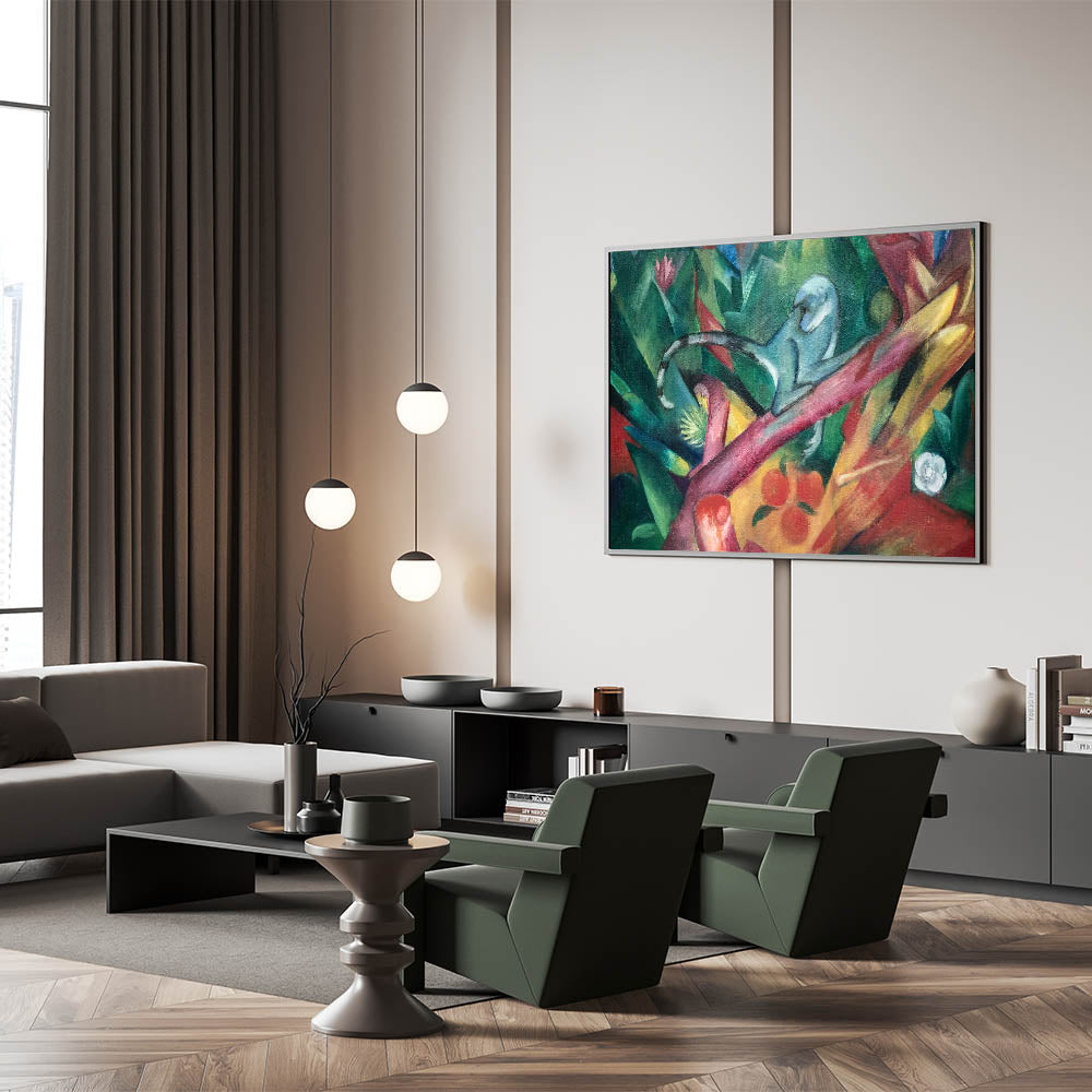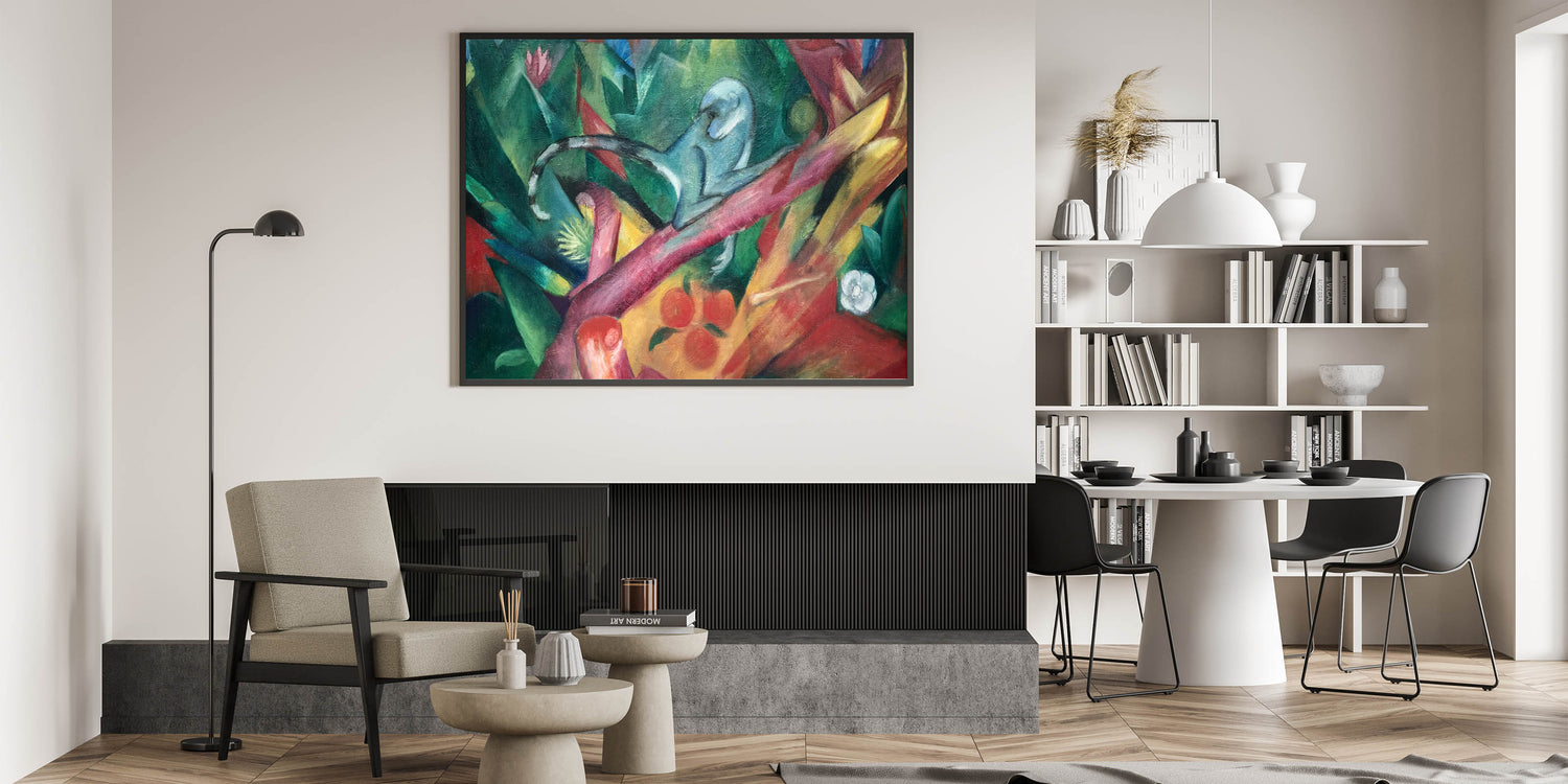 Add this vibrant piece to your home or office and celebrate the artistry of Franz Marc. Whether you’re an animal lover or an art enthusiast, "The Little Monkey" brings a sense of energy and creativity to any space.