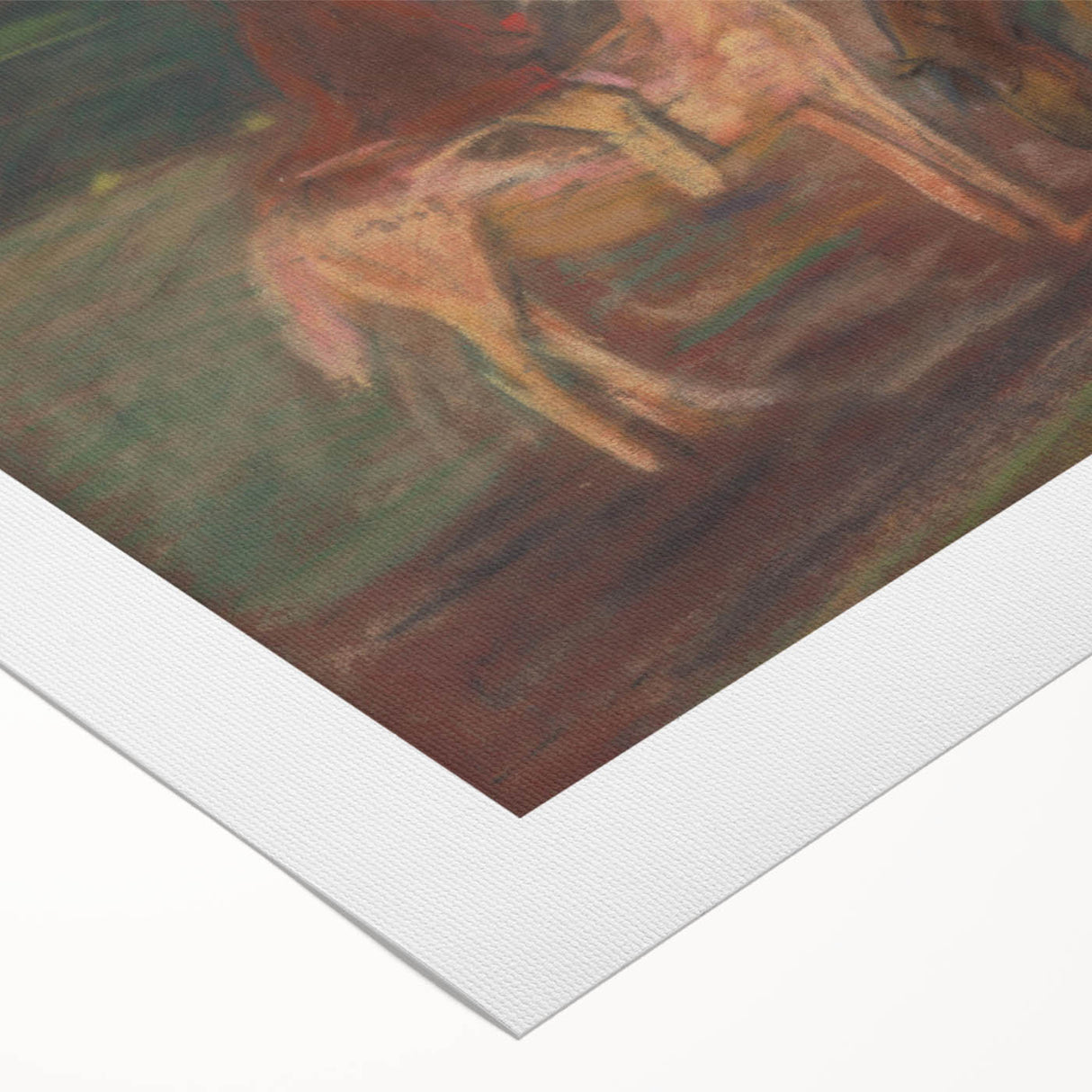 Step into a serene yet evocative landscape with Riders by Arnold Peter Weisz-Kubínčan. This Expressionist masterpiece captures a group of riders on horseback amidst rolling hills and an expansive, atmospheric sky. The soft, blended tones of reds, greens, and browns create a dreamlike quality, bringing the scene to life while maintaining a sense of abstraction. The painting’s rich palette and emotive brushwork make it a timeless piece, perfect for art lovers who appreciate depth and narrative in their collection.