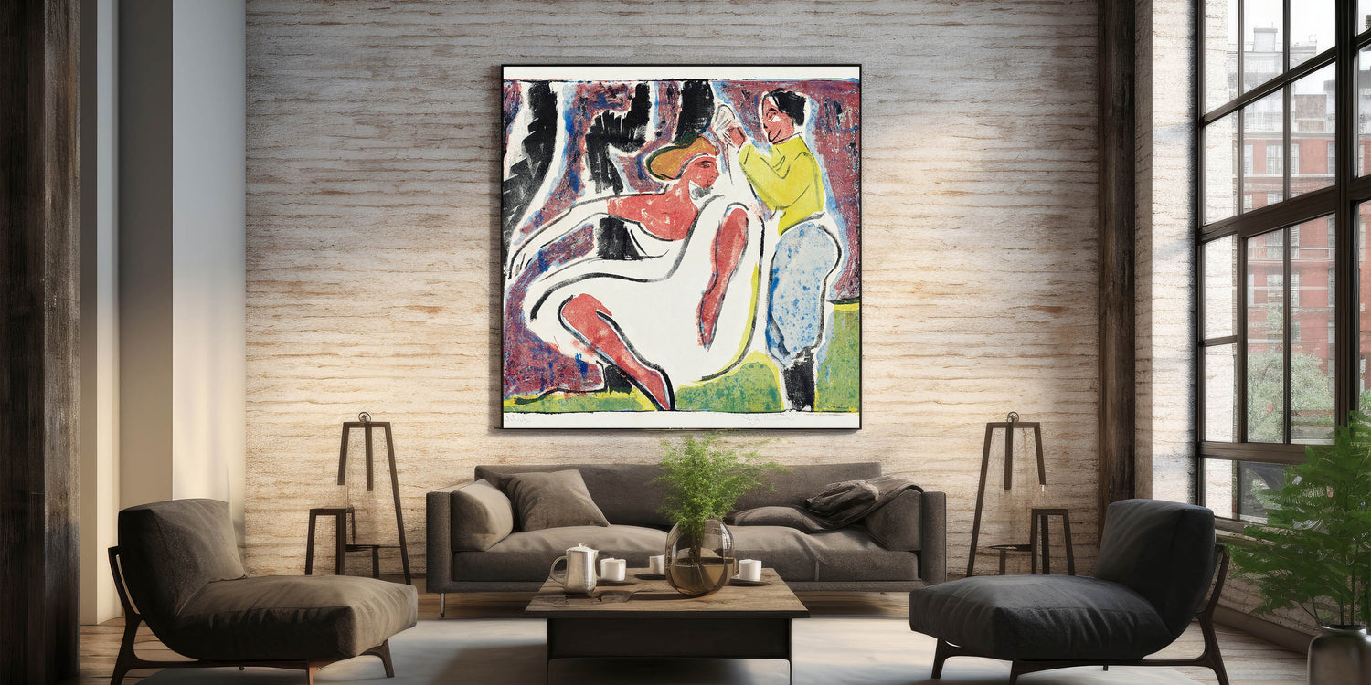 Immerse yourself in the vibrant rhythm of Russian Dancers by Ernst Ludwig Kirchner. This dynamic Expressionist artwork captures the lively interaction of two figures mid-dance, rendered in bold brushstrokes and striking colors. The rich palette of reds, yellows, blues, and blacks emphasizes the fluidity of movement and energy, creating a captivating portrayal of cultural celebration. Perfect for art lovers who appreciate movement and vibrancy, this piece brings excitement and life to any setting.
