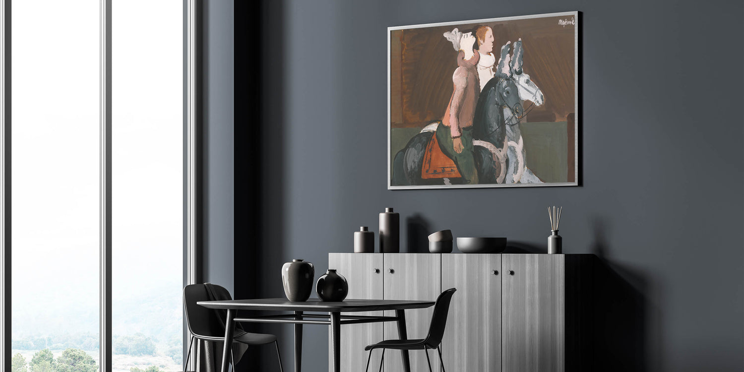 Add a touch of elegance and motion to your space with "Two Riders" by Cyprián Majerník. This captivating Expressionist artwork captures a moment of timeless grace, showcasing two riders on horseback amidst a striking composition of earthy tones and dynamic brushstrokes. The interplay of warm and muted colors creates a harmonious and thought-provoking visual experience.