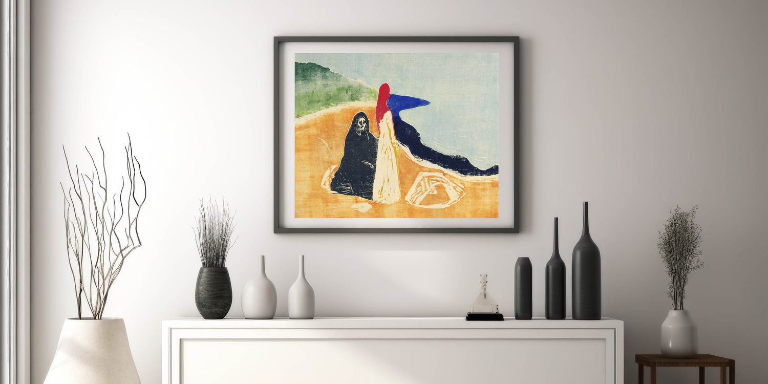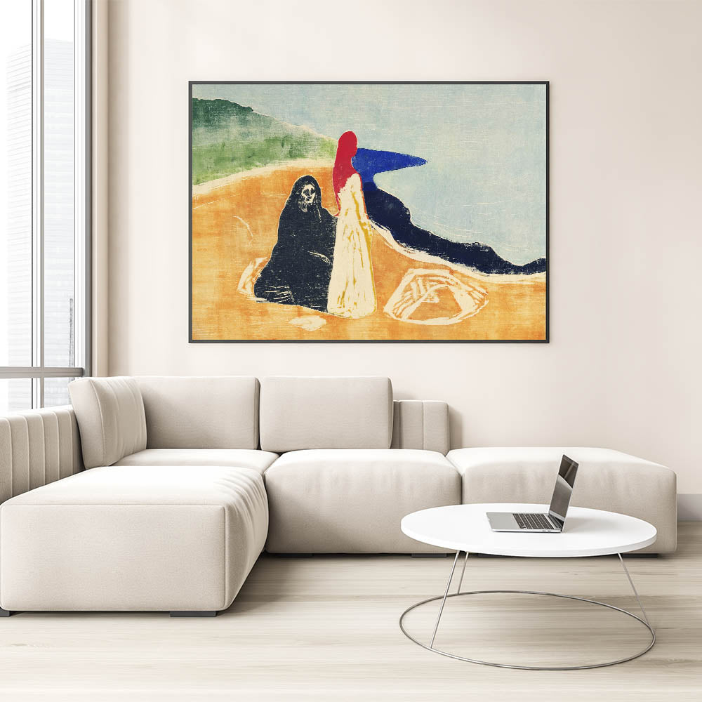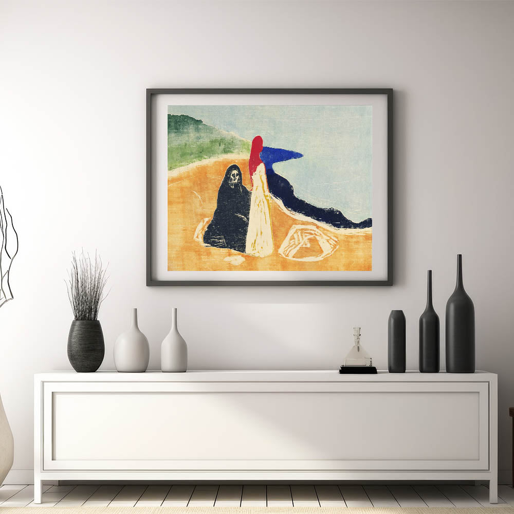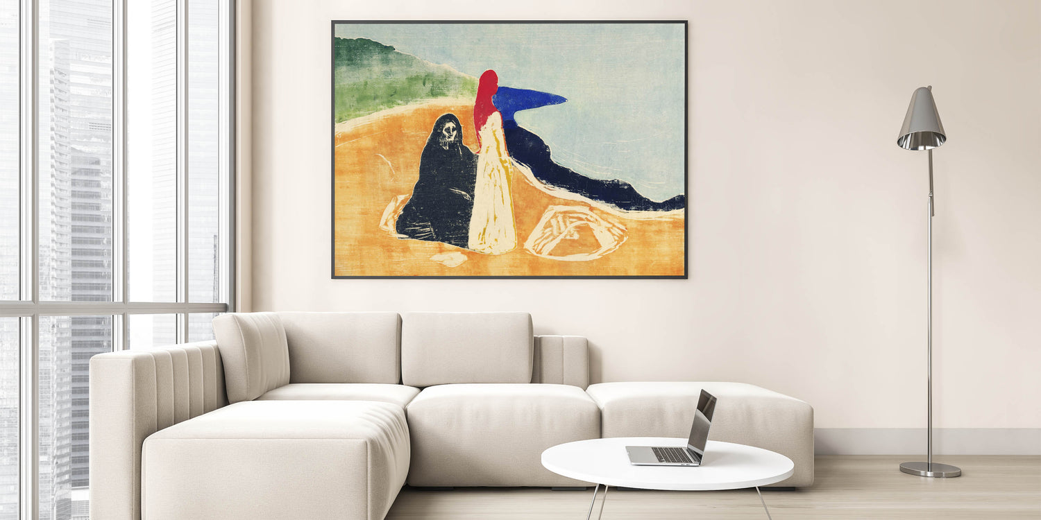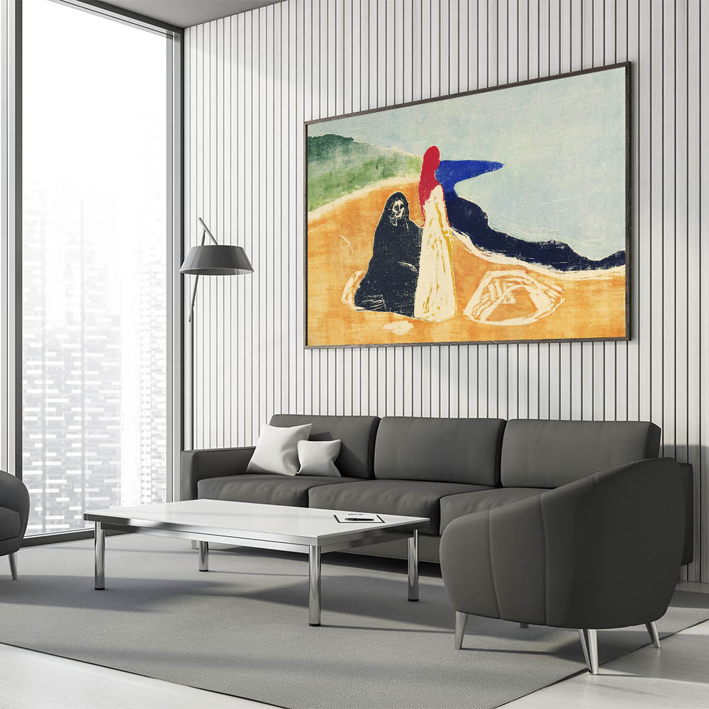 Immerse yourself in the evocative world of Edvard Munch with "Two Women on the Shore," a stunning representation of Expressionism. This thought-provoking artwork depicts two figures standing by the water, with bold, contrasting colors and symbolic elements that stir emotion and imagination. Munch’s mastery of texture and tone brings depth and meaning to this unforgettable scene.