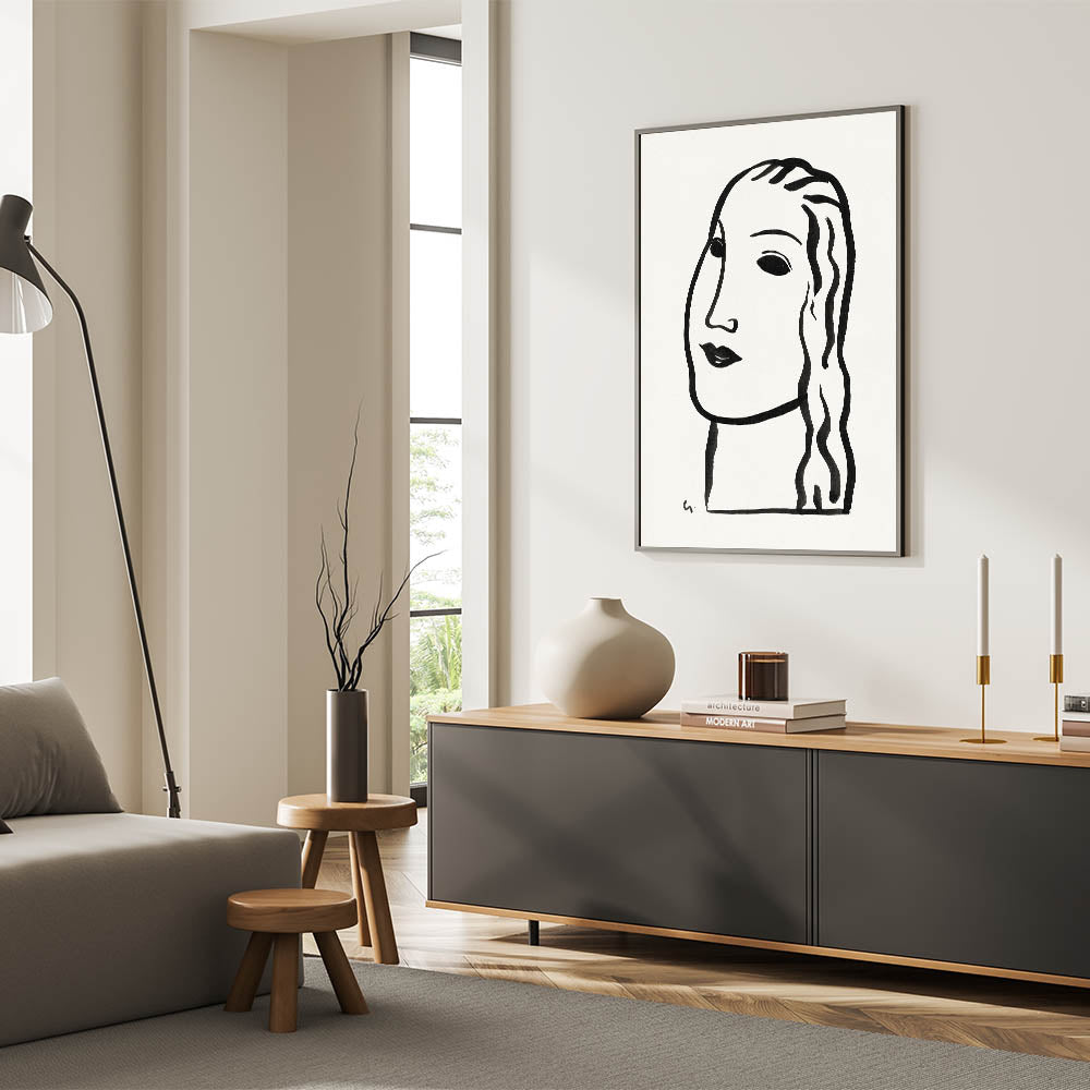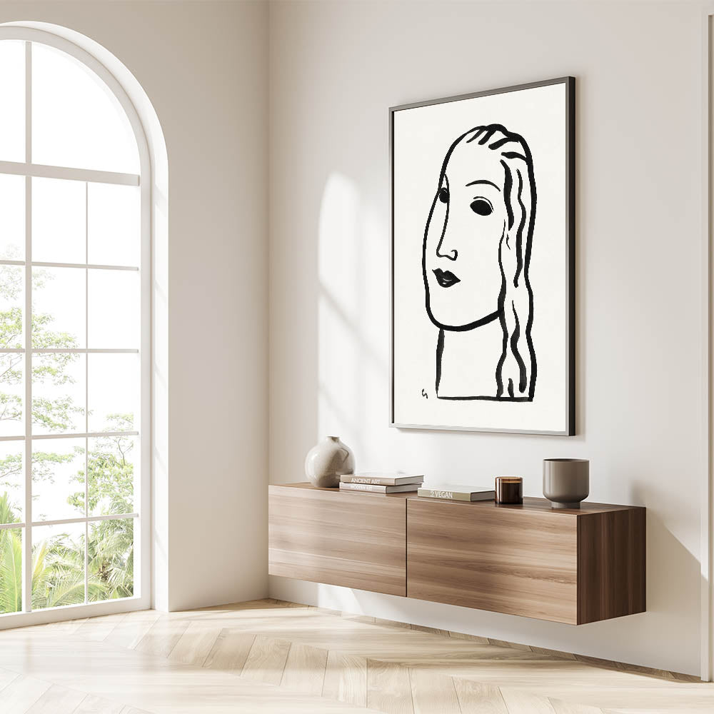 Add a touch of refined elegance to your space with "Woman's Head," a captivating minimalist portrait by Expressionist artist Leo Gestel. The bold black brushstrokes against a clean white background create a striking visual that emphasizes the raw emotion and simplicity of Expressionism. This piece combines abstraction and figurative art, making it a timeless addition to any art collection.
