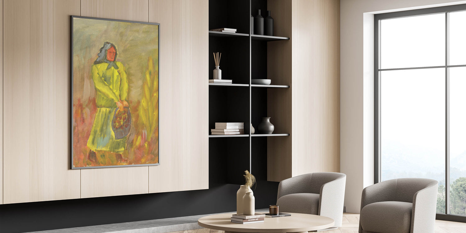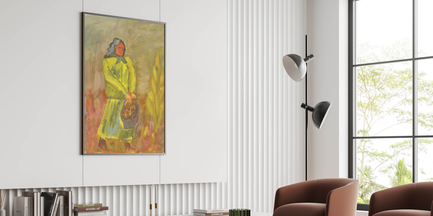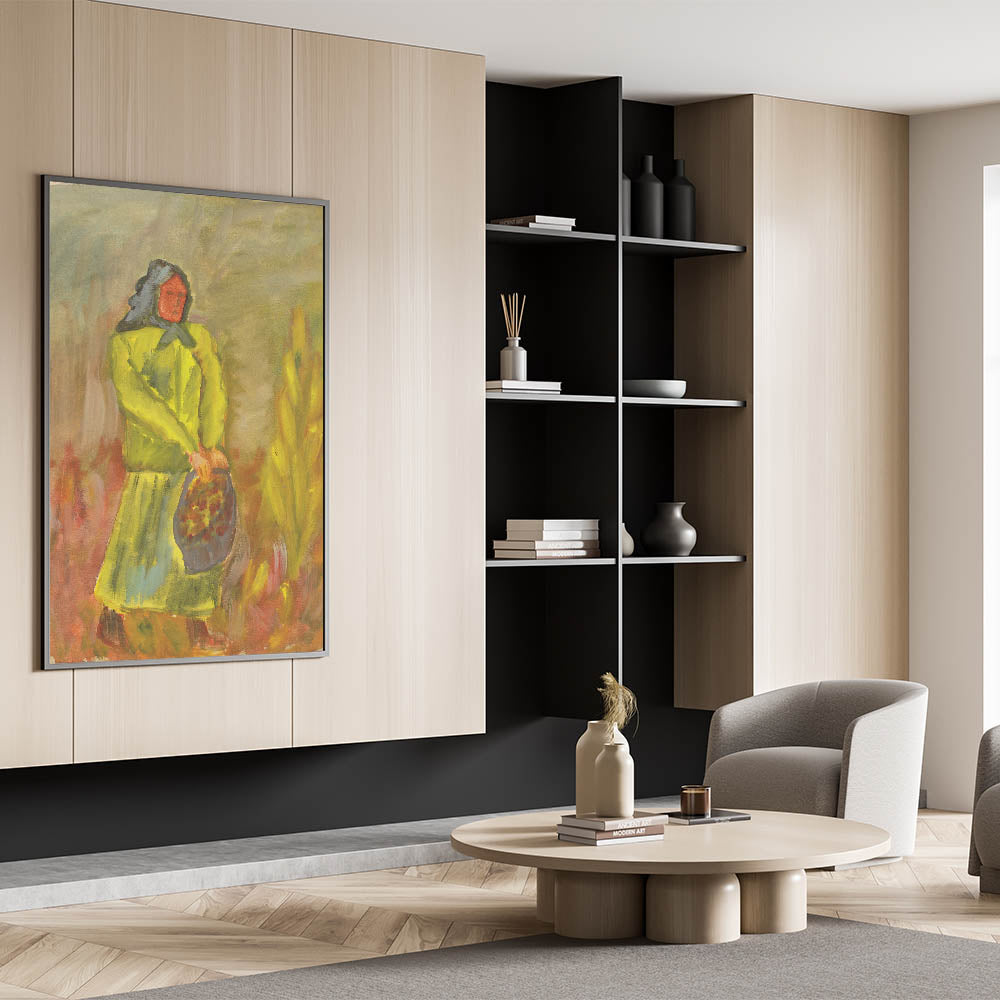Expressionist Woman with Basket – Vibrant Figurative Wall Art