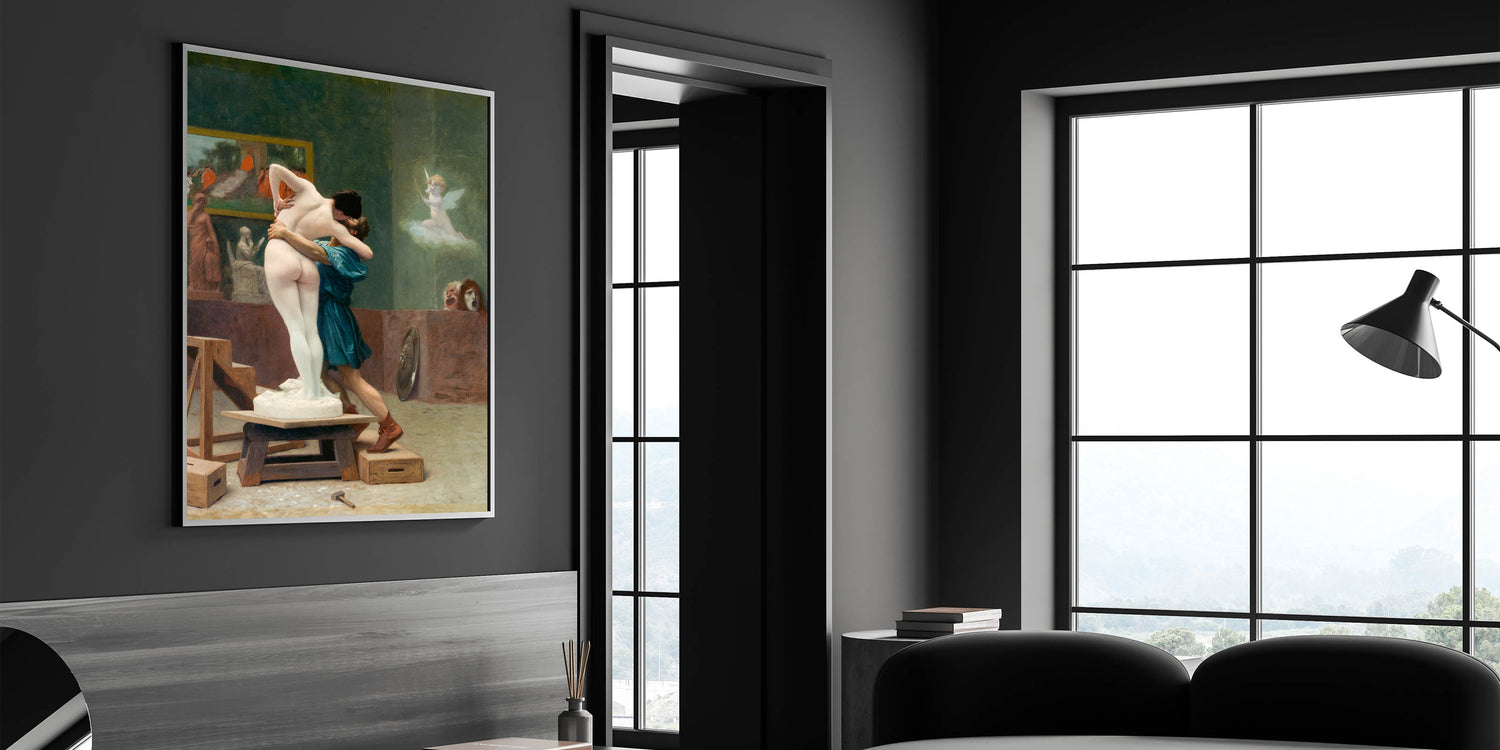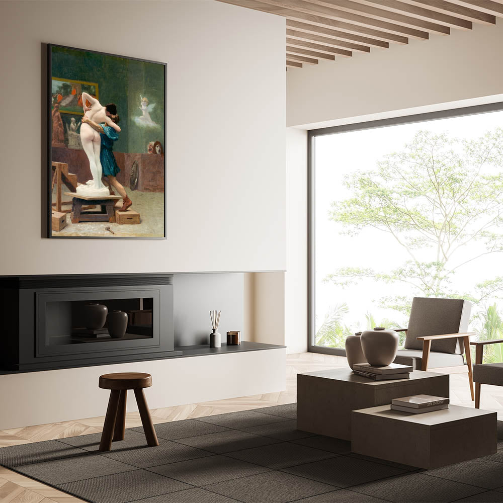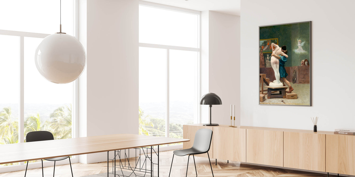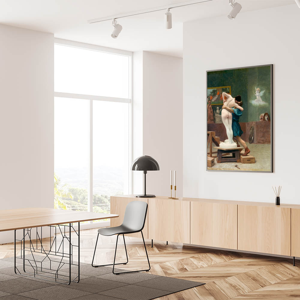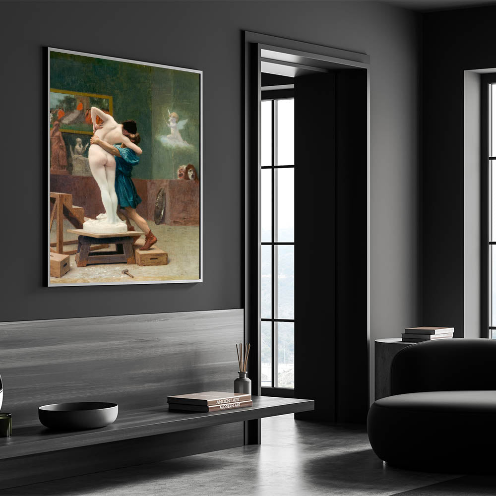 Celebrate the allure of Romanticism style wall art with Jean-Léon Gérôme's iconic painting, Pygmalion and Galatea (ca. 1890). This masterpiece brings to life the myth of Pygmalion, capturing the magical moment when his sculpted masterpiece, Galatea, comes alive. The painting's rich tones, emotional intensity, and exquisite detail embody the Romantic era's fascination with passion, beauty, and storytelling.