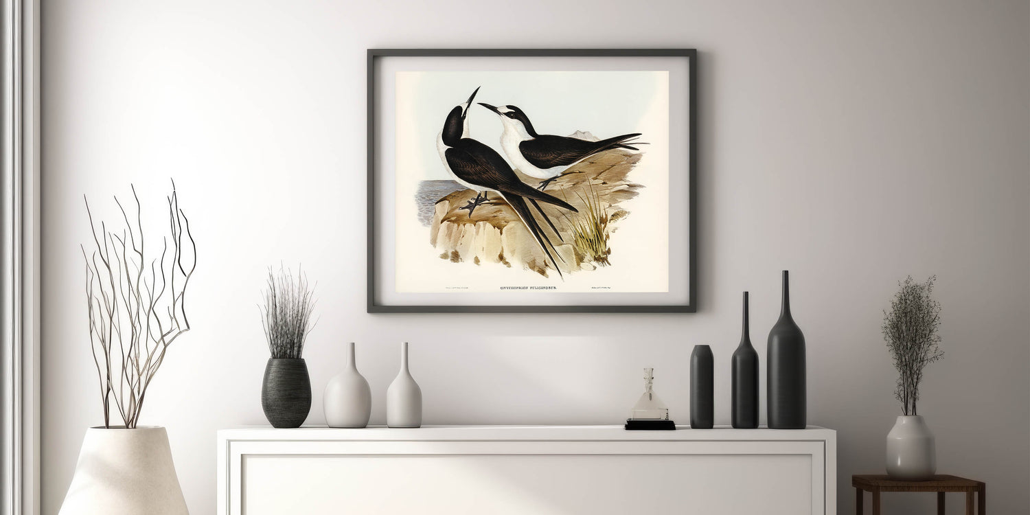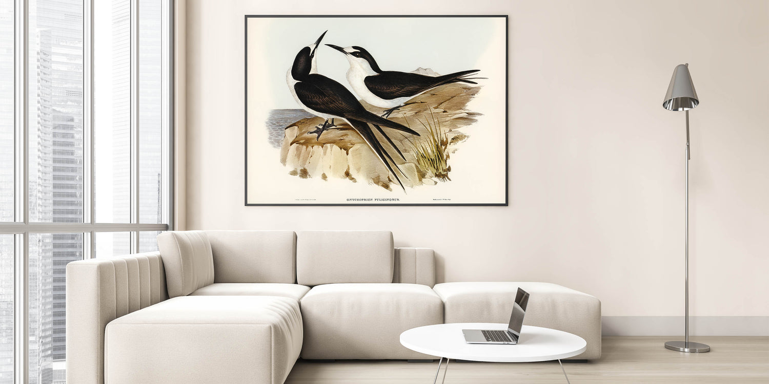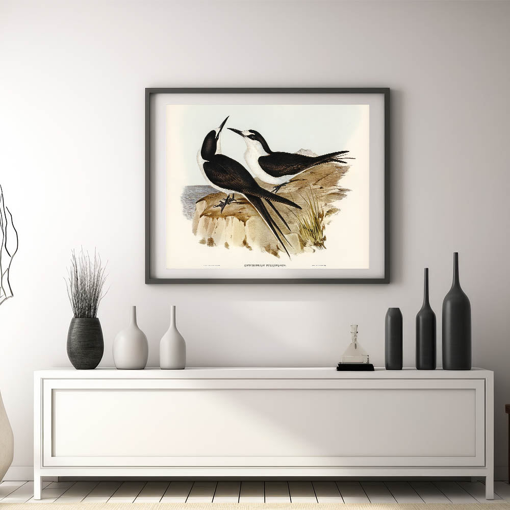 Celebrate the Romantic era’s deep appreciation for nature with this elegant illustration of the Sooty Tern (Onychoprion fuliginosus), masterfully created by Elizabeth Gould. This detailed artwork captures the harmonious balance between the birds’ sleek forms and their serene coastal surroundings. Perfect for bird enthusiasts and art lovers alike, this piece brings a timeless charm to your space.