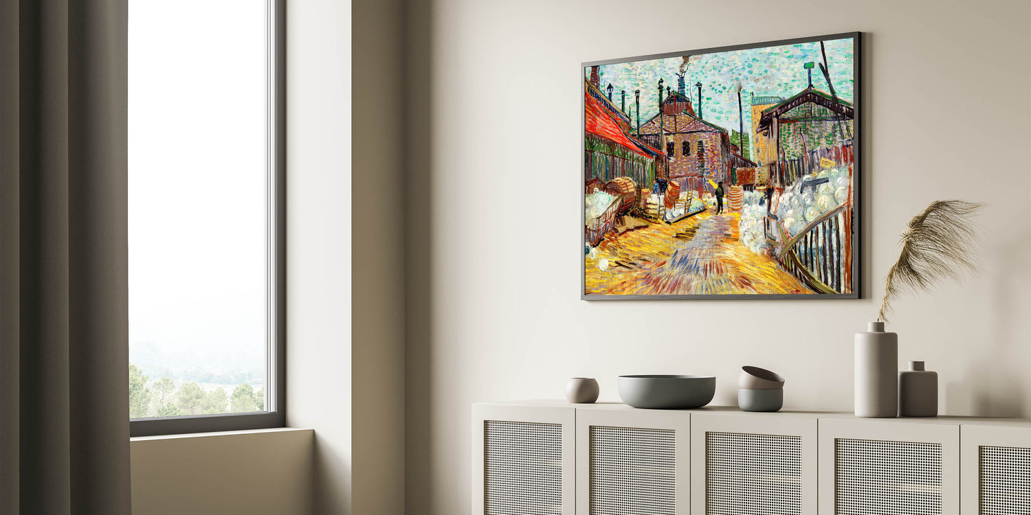 Add a vibrant and dynamic touch to your home with The Factory by Vincent van Gogh, an exemplary piece of Impressionist art. This striking artwork captures the industrial revolution's energy, with expressive brushstrokes and bold colors that bring the bustling factory scene to life. Perfect for lovers of French Impressionist art, this piece blends historic relevance with artistic brilliance, making it a centerpiece for any space.