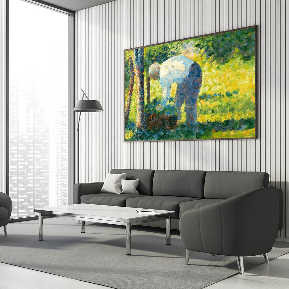 Transform your space with The Gardener, a radiant Impressionist painting by Georges Seurat. This artwork captures a tranquil scene of a gardener tending to lush greenery, rendered in Seurat's signature style with vibrant dabs of color and delicate light play. A timeless tribute to the beauty of nature and human connection, this painting is a must-have for admirers of French Impressionist art. Perfect for home or office decor, it adds depth and charm to any setting.