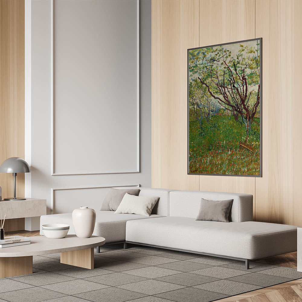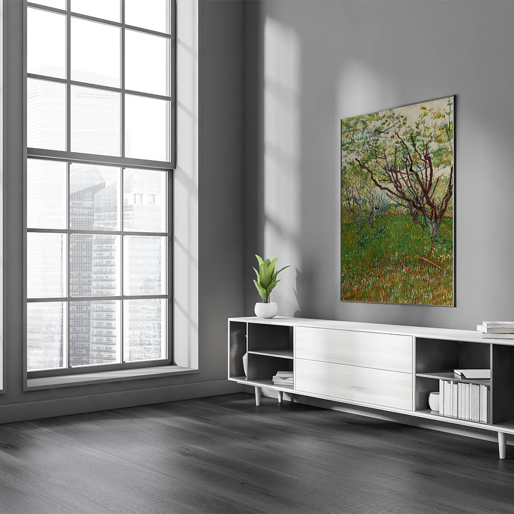 Capture the essence of spring with this breathtaking Impressionist wall art, inspired by the vibrant beauty of blooming orchards. This artwork, crafted in the style of famous Impressionist paintings, features intricate details of blossoming trees and lush greenery. The soft yet vivid palette embodies the Impressionist style, making it a timeless addition to any space.