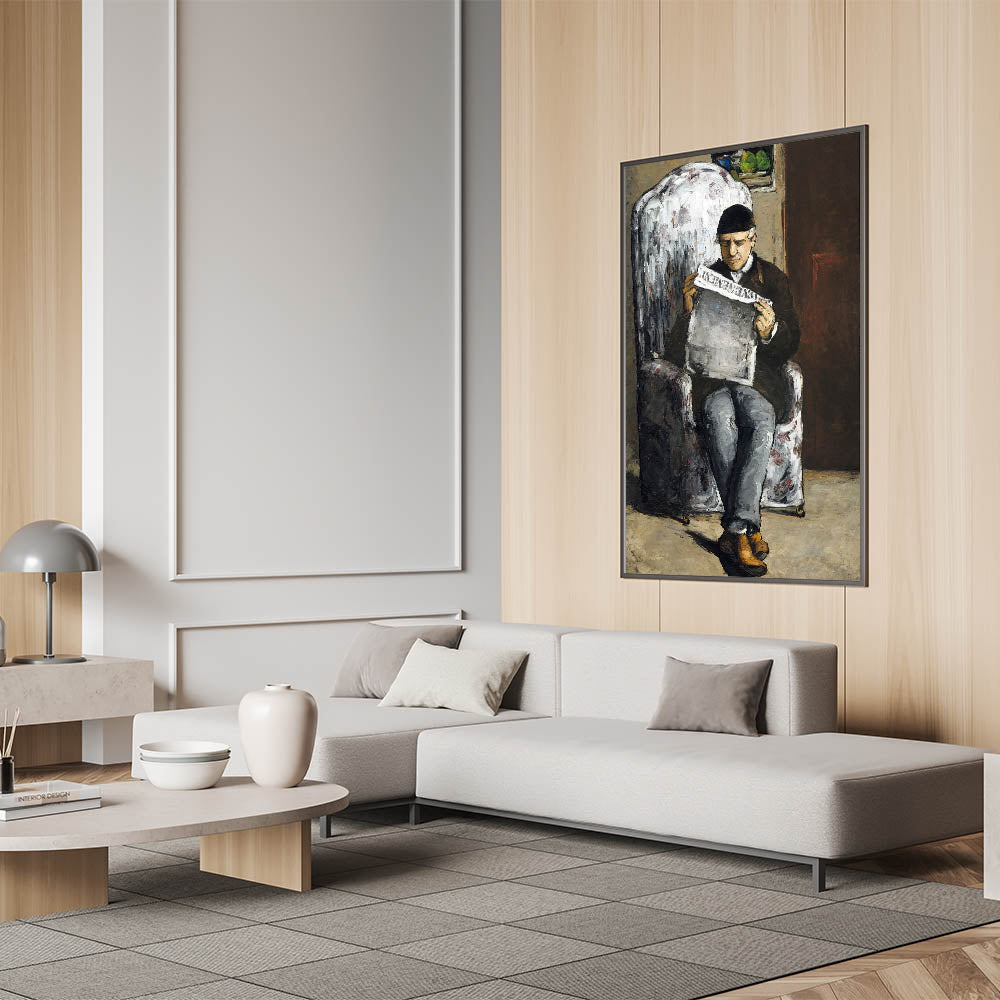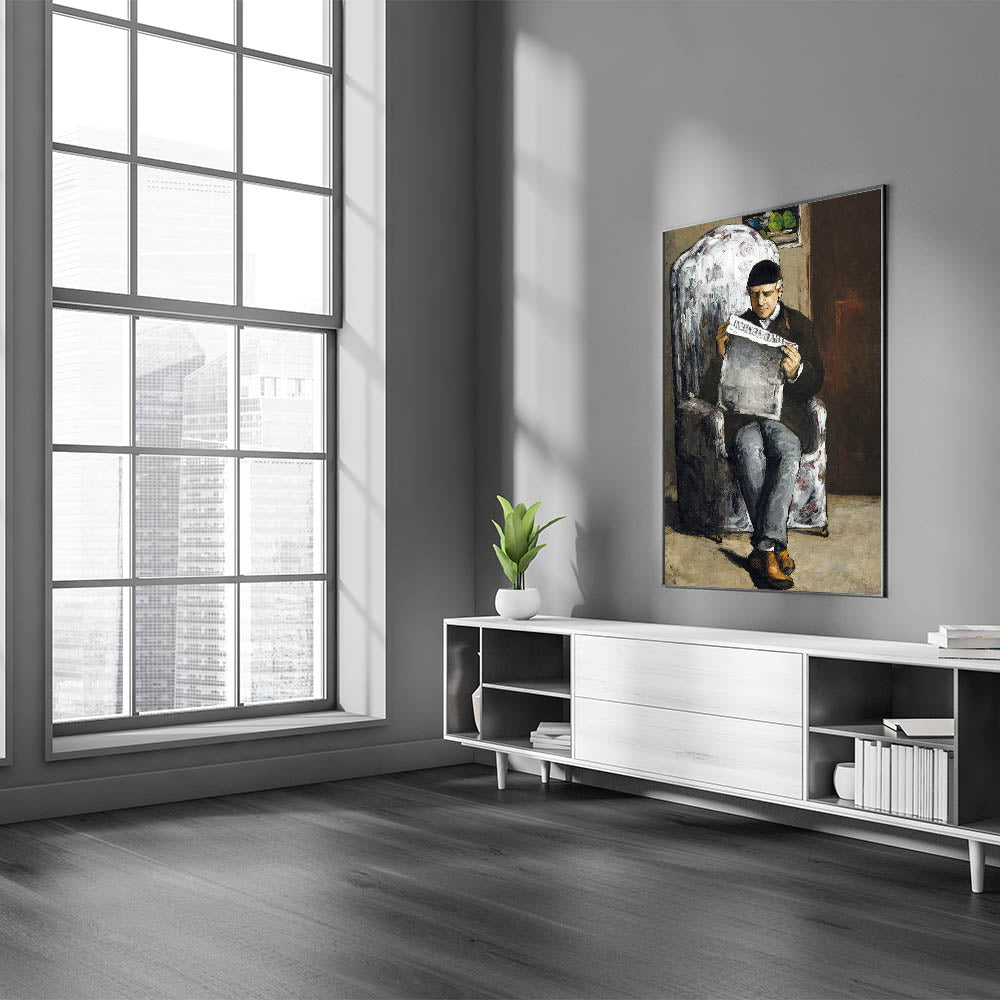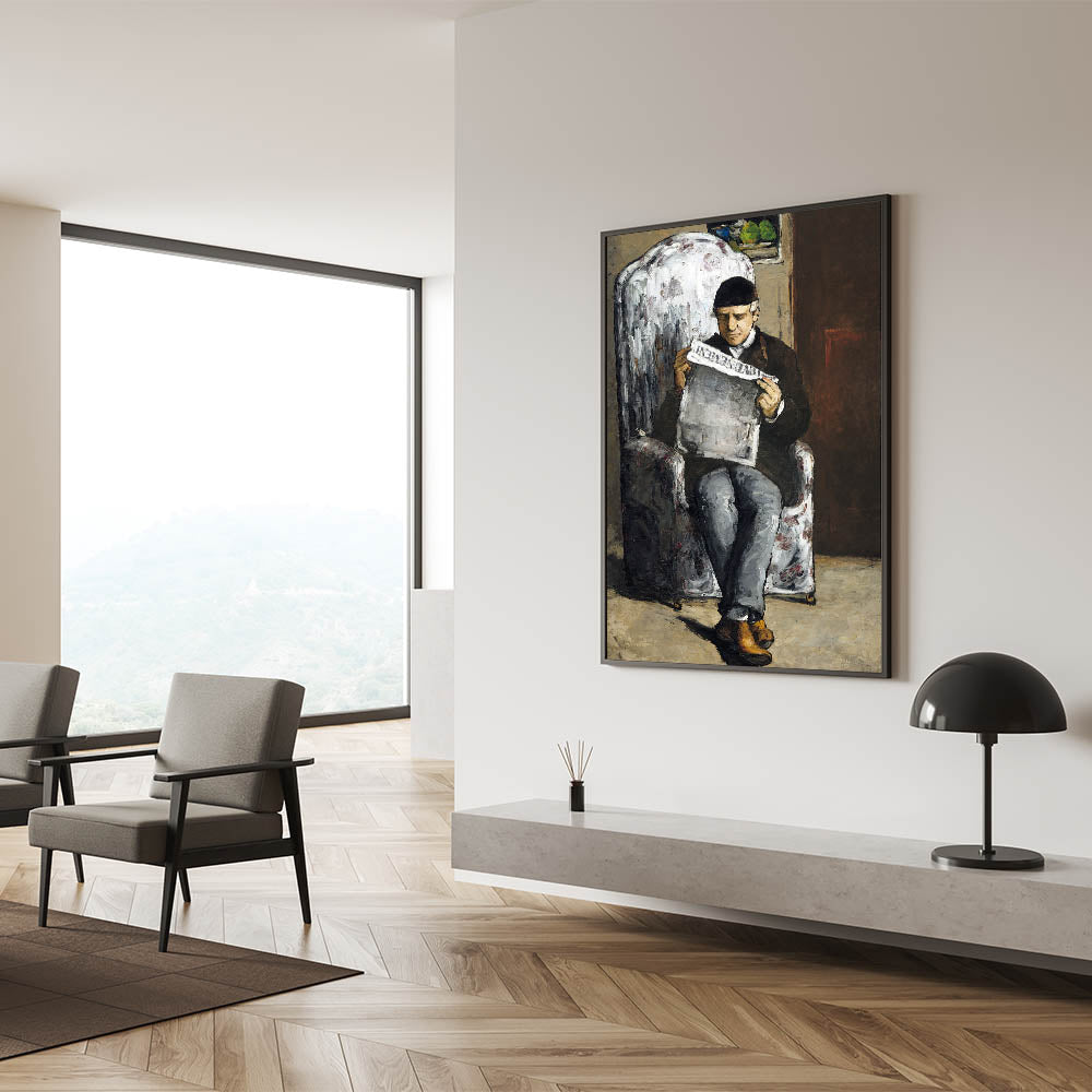 Add a touch of history and artistic depth to your space with Paul Cézanne's "The Artist's Father, Reading L'Événement." This powerful portrait showcases Cézanne's unique Impressionist style, combining expressive brushstrokes with a muted color palette. The painting captures an intimate moment as Cézanne's father reads a newspaper, bringing a sense of stillness and introspection to the scene. Perfect for art enthusiasts, this piece is an iconic representation of Cézanne's early works and his exploration of human connection.