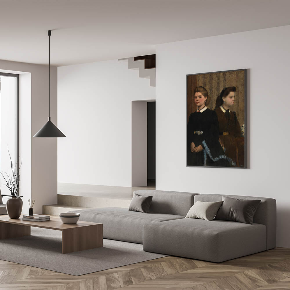 Bring elegance and depth to your space with Edgar Degas' "The Bellelli Sisters" (Giovanna and Giuliana Bellelli). This Impressionist masterpiece portrays a tender yet reserved moment between the two sisters, highlighting Degas’ extraordinary ability to capture the complexities of human emotion and relationships. With its rich tones and subtle brushwork, this artwork blends realism with Impressionist finesse, making it a captivating addition to any art collection.