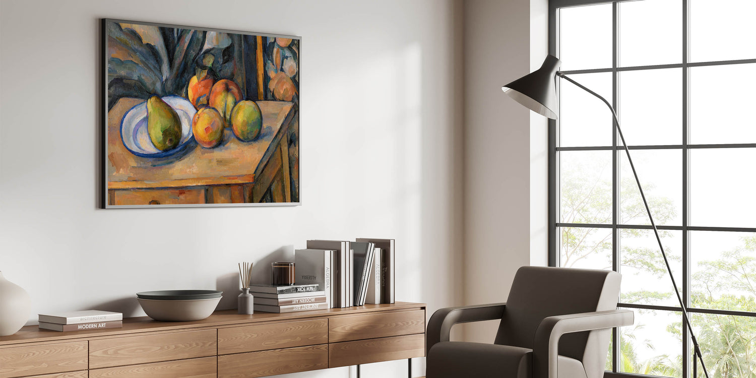 - Impressionist Style Decor: A still-life masterpiece by Paul Cézanne, perfect for art lovers.