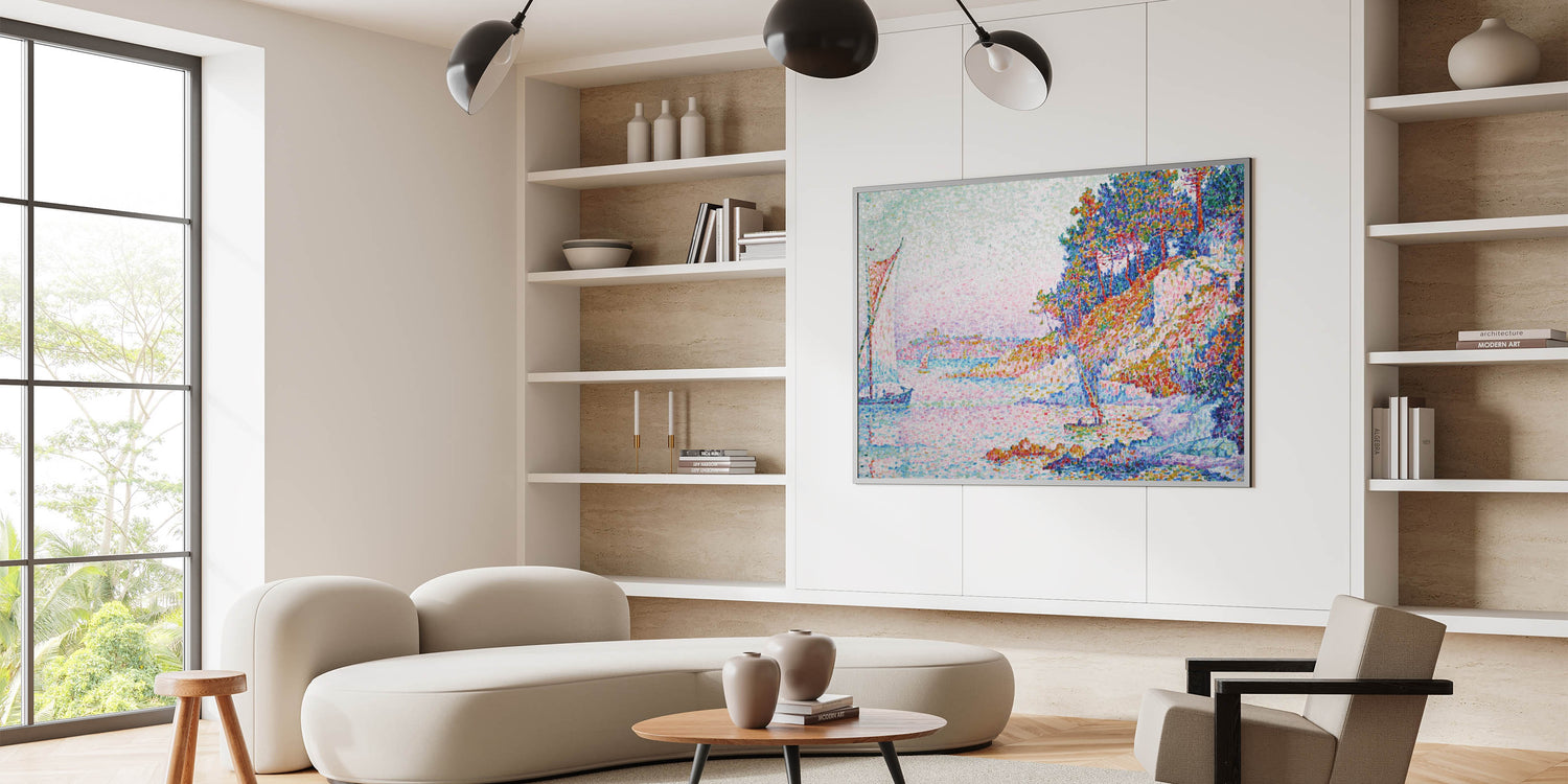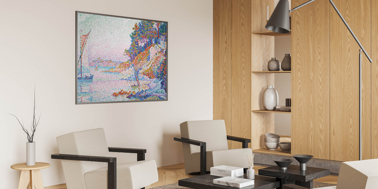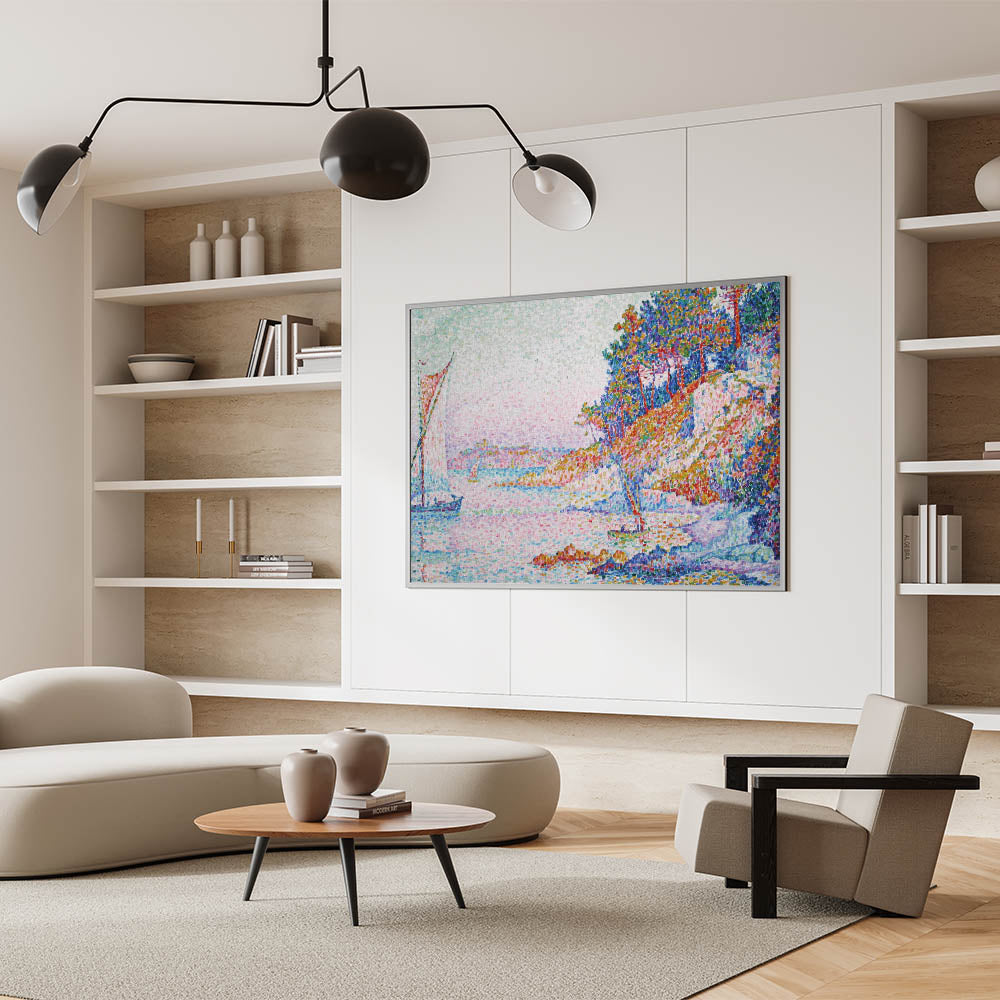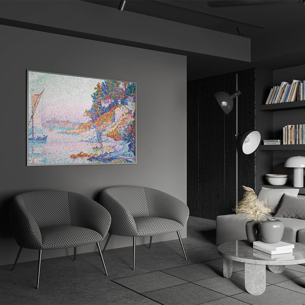 Bring the charm of the Mediterranean to your home with this timeless artwork that celebrates the beauty of nature and the brilliance of Pointillism.