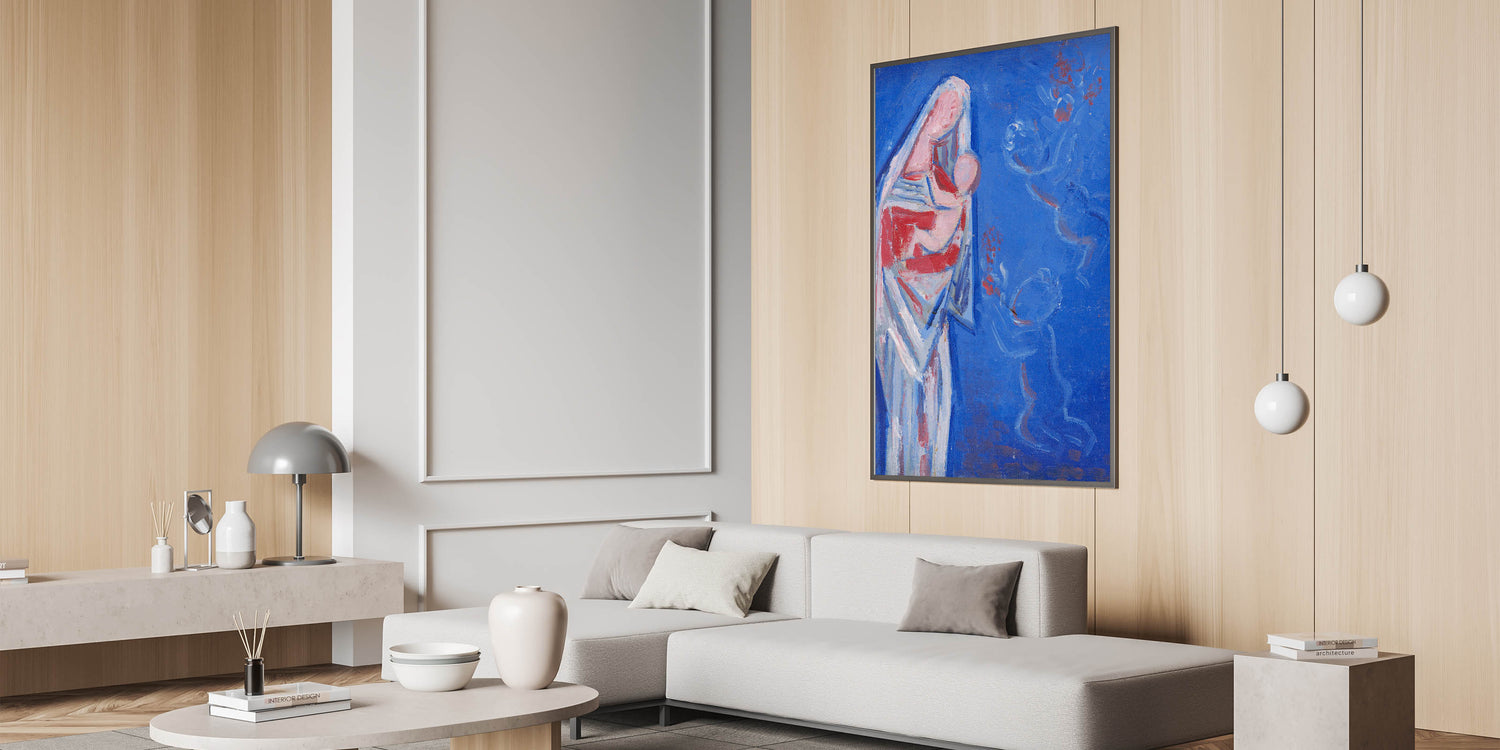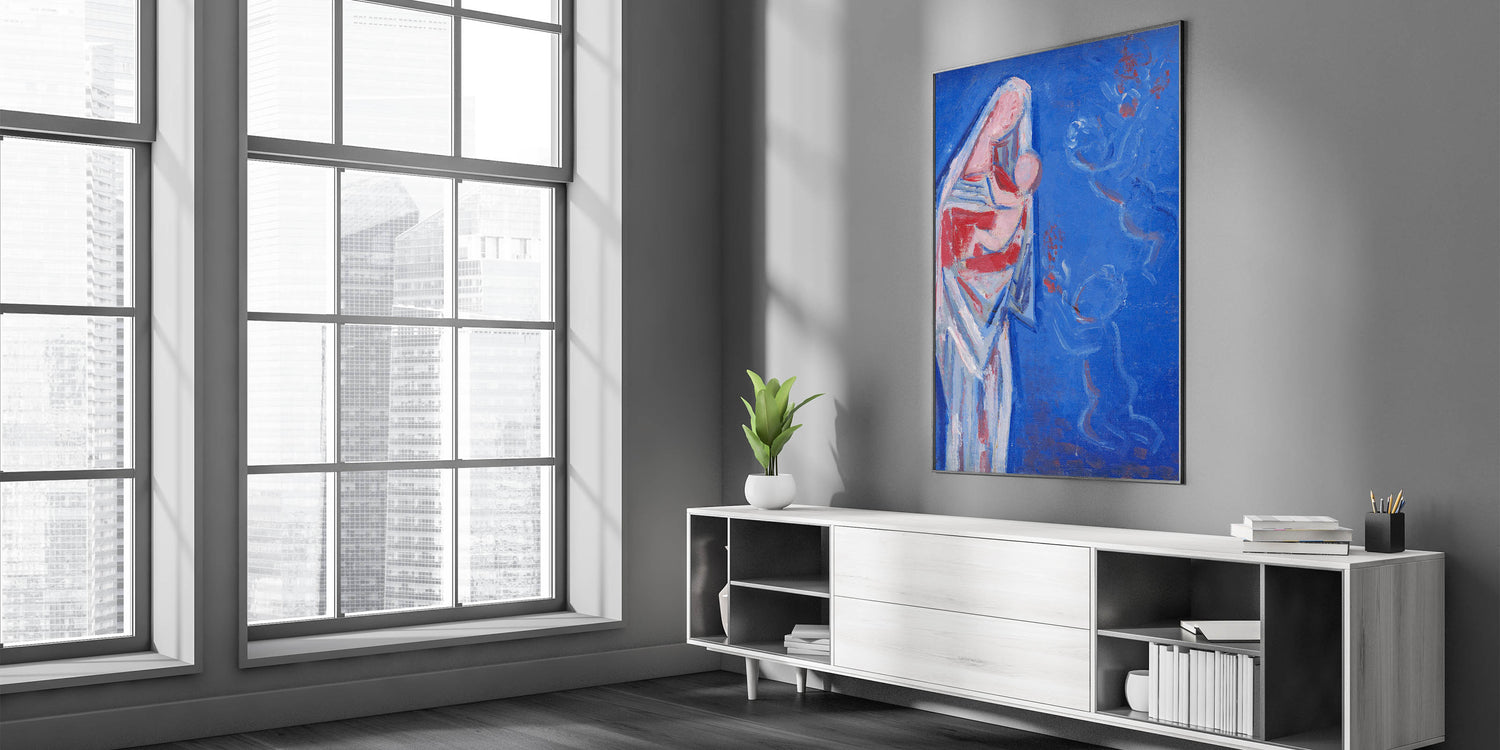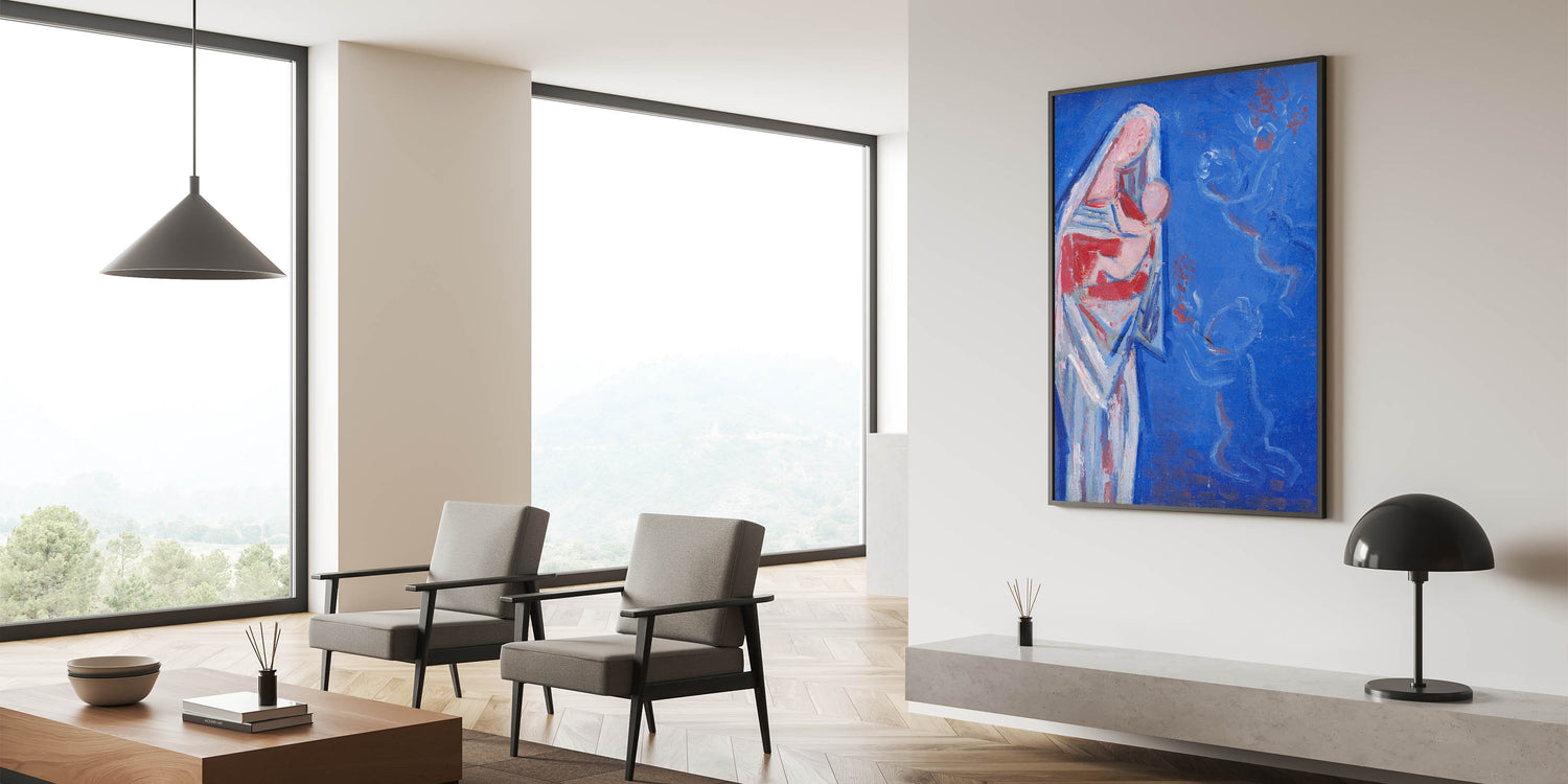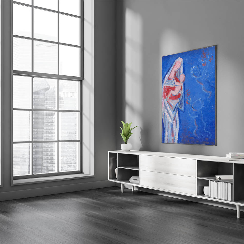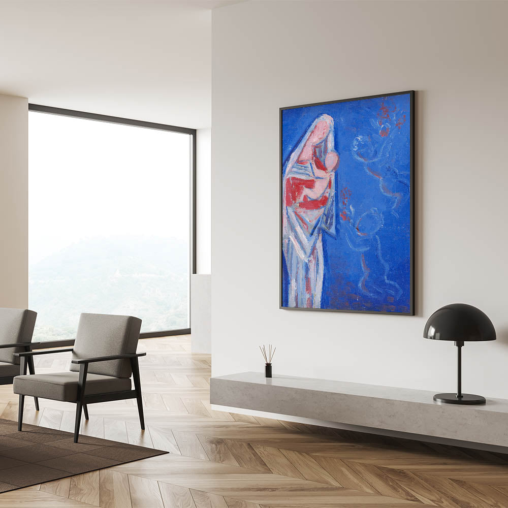 Modern Abstract Madonna - Blue Contemporary Wall Art for Home Decor