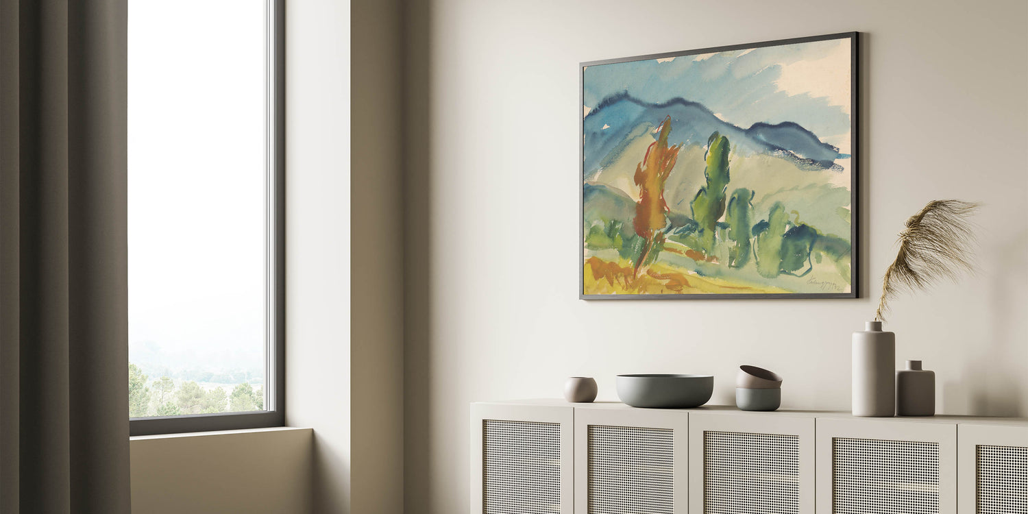 - Vibrant modern wall art with abstract landscape design