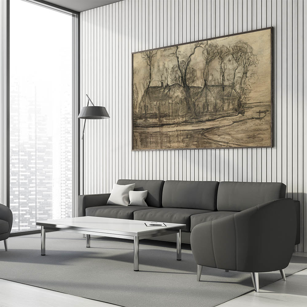 Introduce timeless charm to your living space with the "Modern Farm Landscape" wall art. This captivating piece showcases a monochromatic countryside scene, blending minimalist modern decor with rustic nostalgia. Featuring softly sketched trees and a serene farmhouse, this artwork perfectly complements a variety of interior styles, from contemporary to rustic chic.
