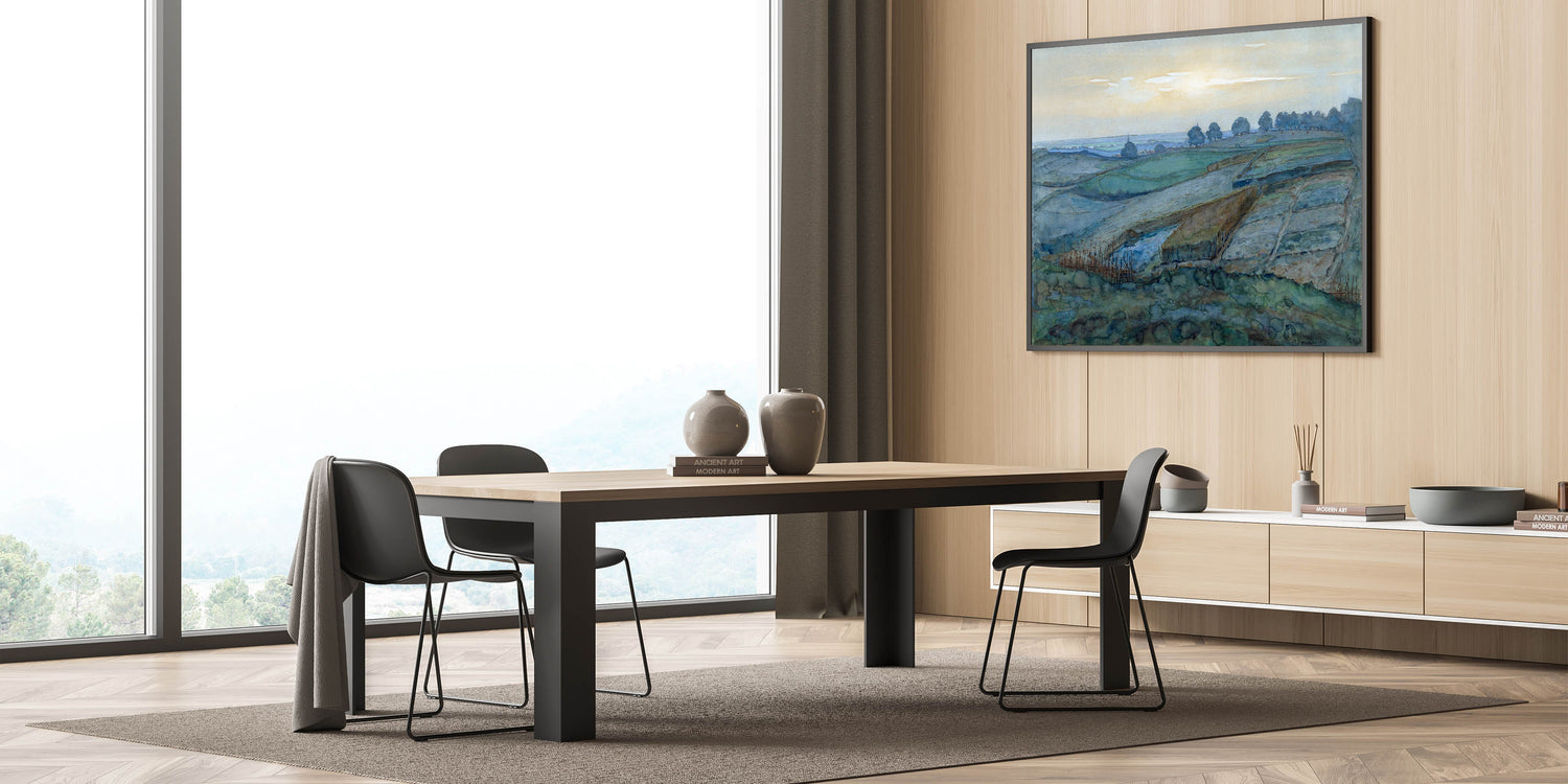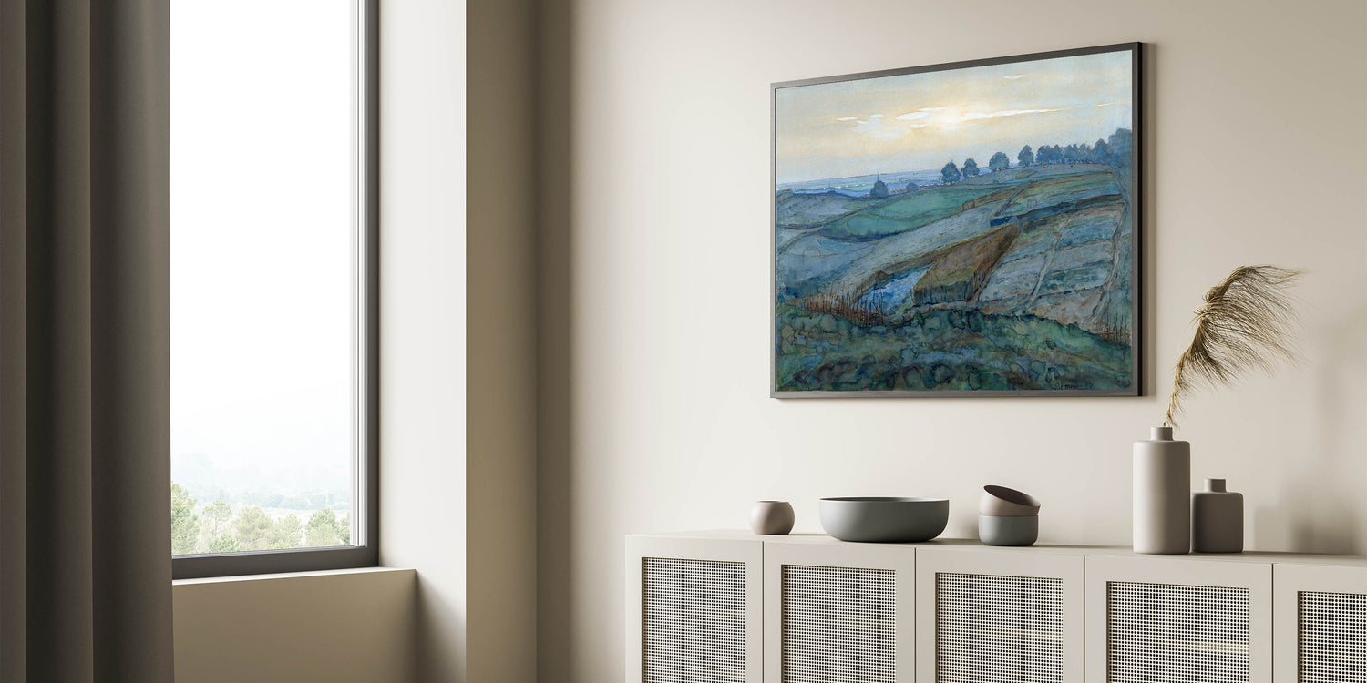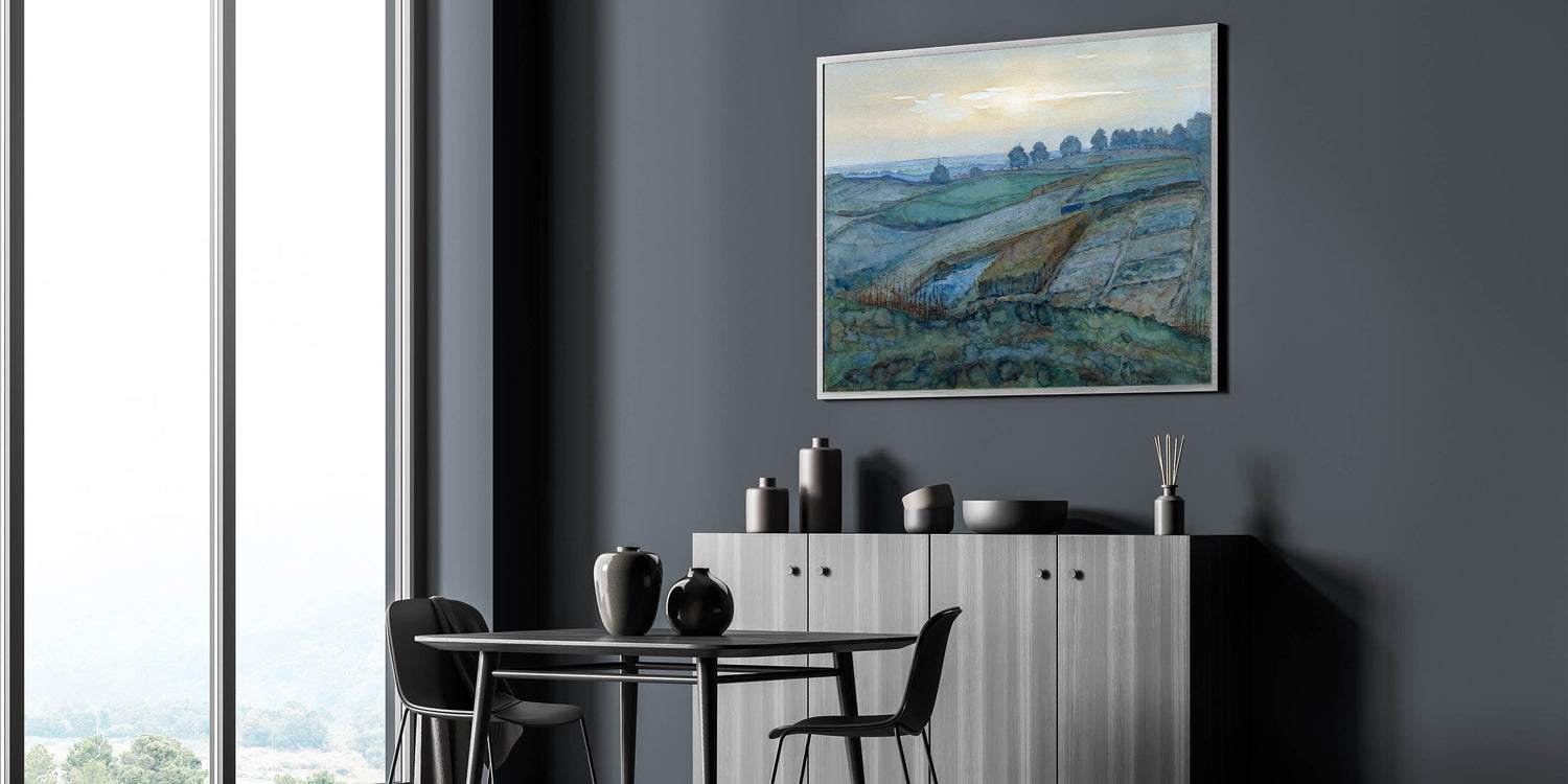 Bring the serene beauty of nature into your space with the "Modern Landscape Art." This exquisite artwork features a peaceful countryside scene in soft shades of green and blue, capturing the harmony of open fields under a tranquil sky. Its modern design elements make it an ideal choice for contemporary or minimalist decor styles, adding depth and elegance to any room.