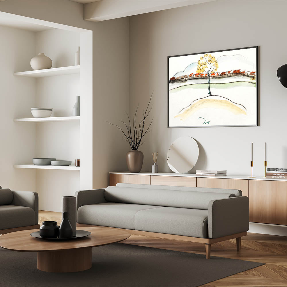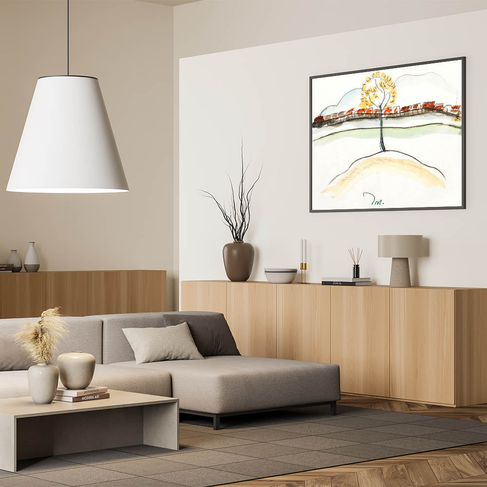 - Unique Modern Art Design: Showcasing a blend of nature and human ingenuity with warm hues and simplified forms.