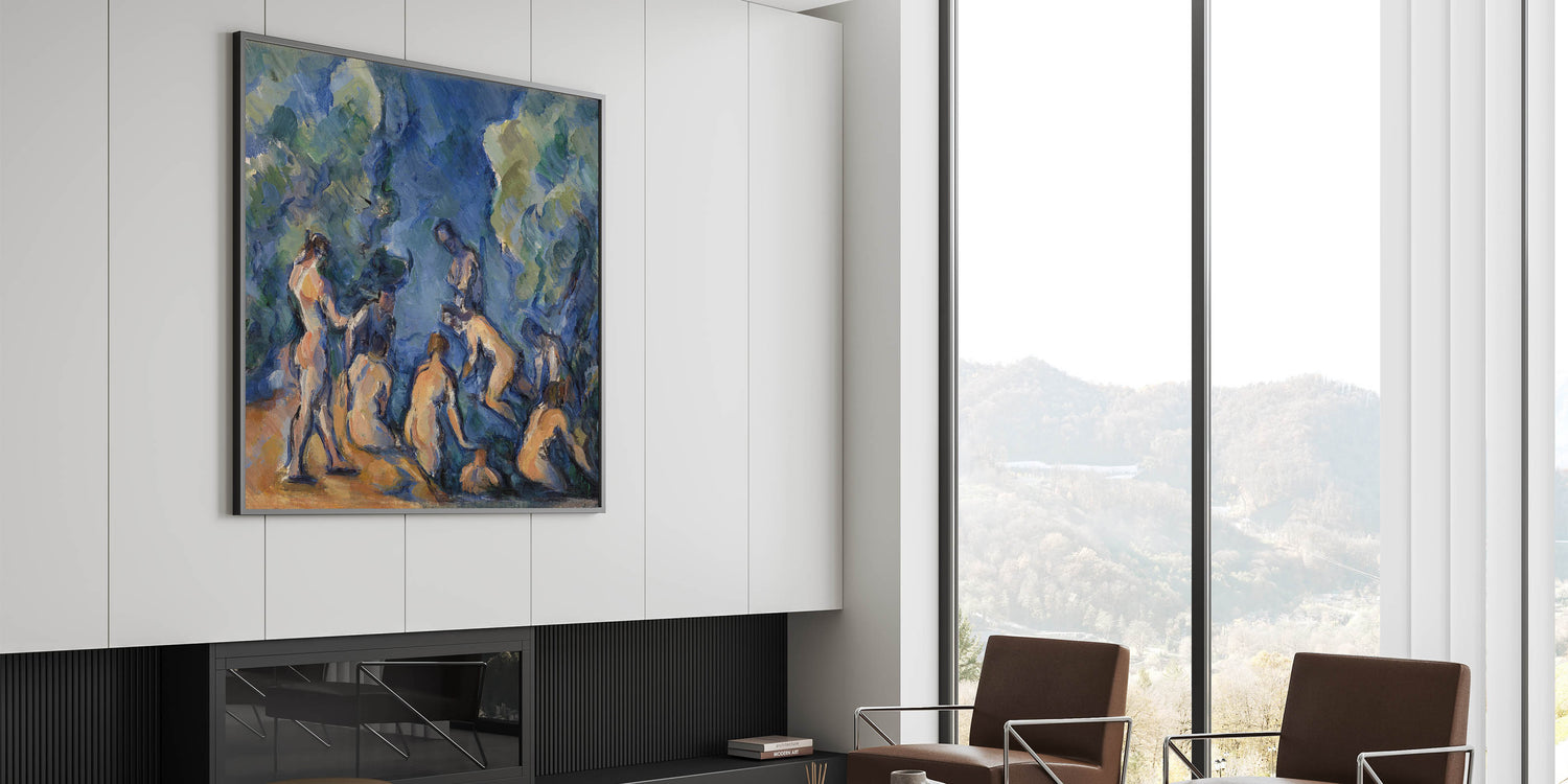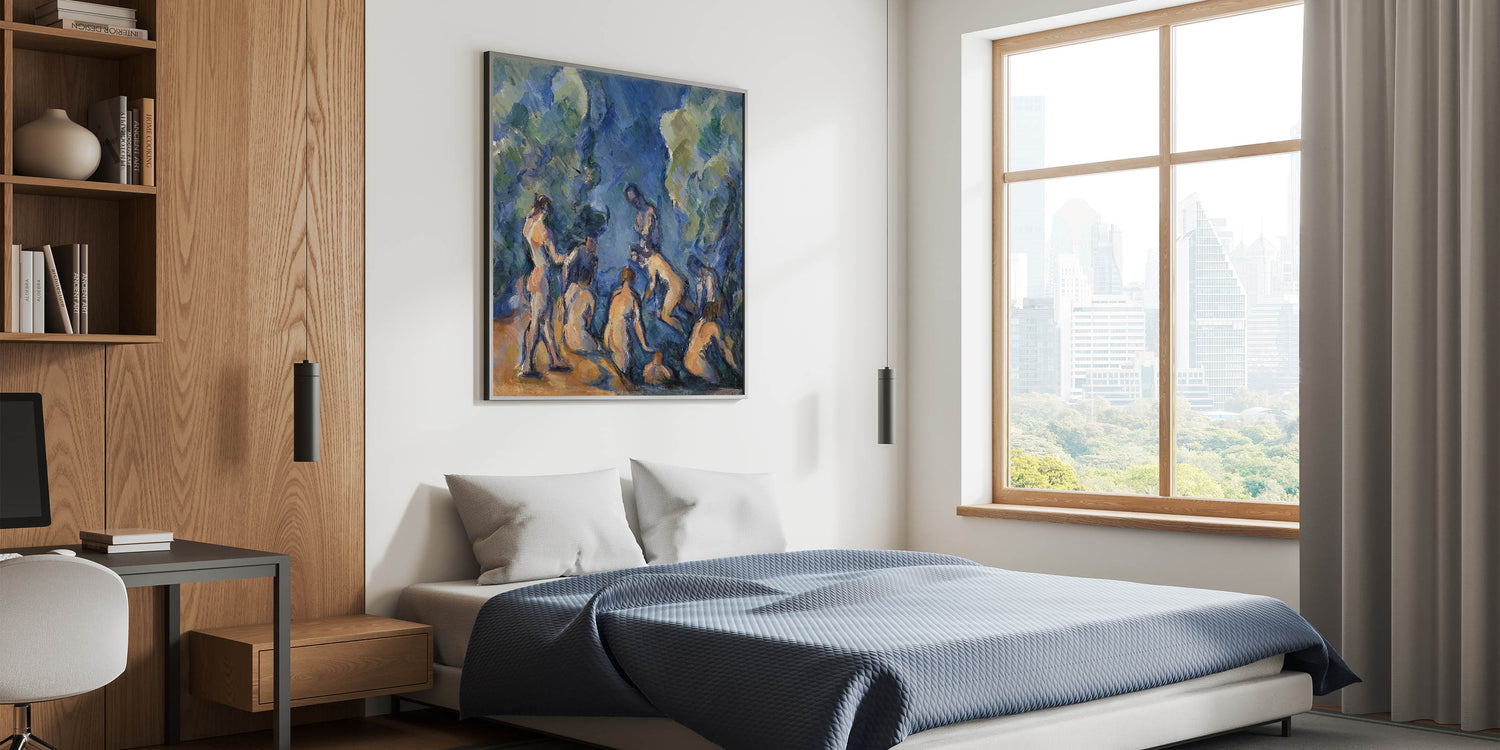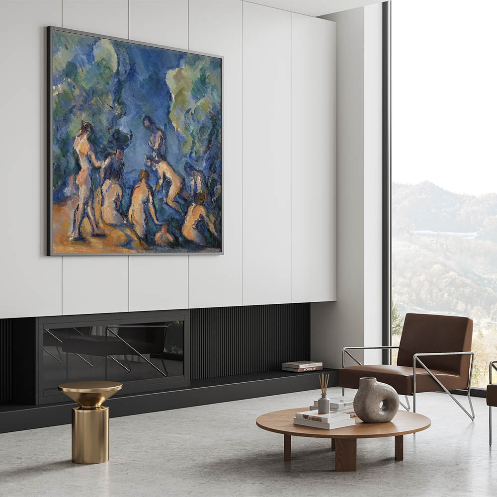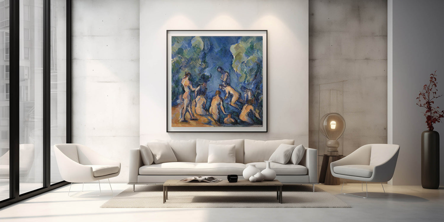 Immerse your space in the timeless elegance of Modern Wall Art with Cézanne’s iconic "Bathers." This artwork blends fluid brushstrokes and a serene palette of blues and greens, evoking a tranquil yet dynamic scene of figures in nature. Perfect for art enthusiasts and those seeking stylish wall art with historical depth.