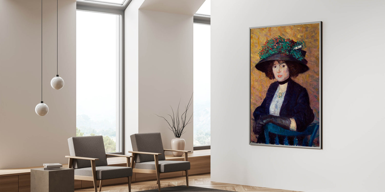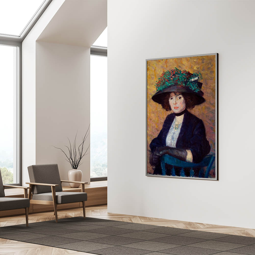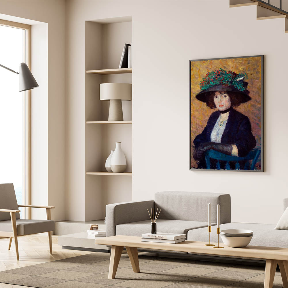 Modern Wall Art - Elegant Woman with Green Hat in Impressionist Style