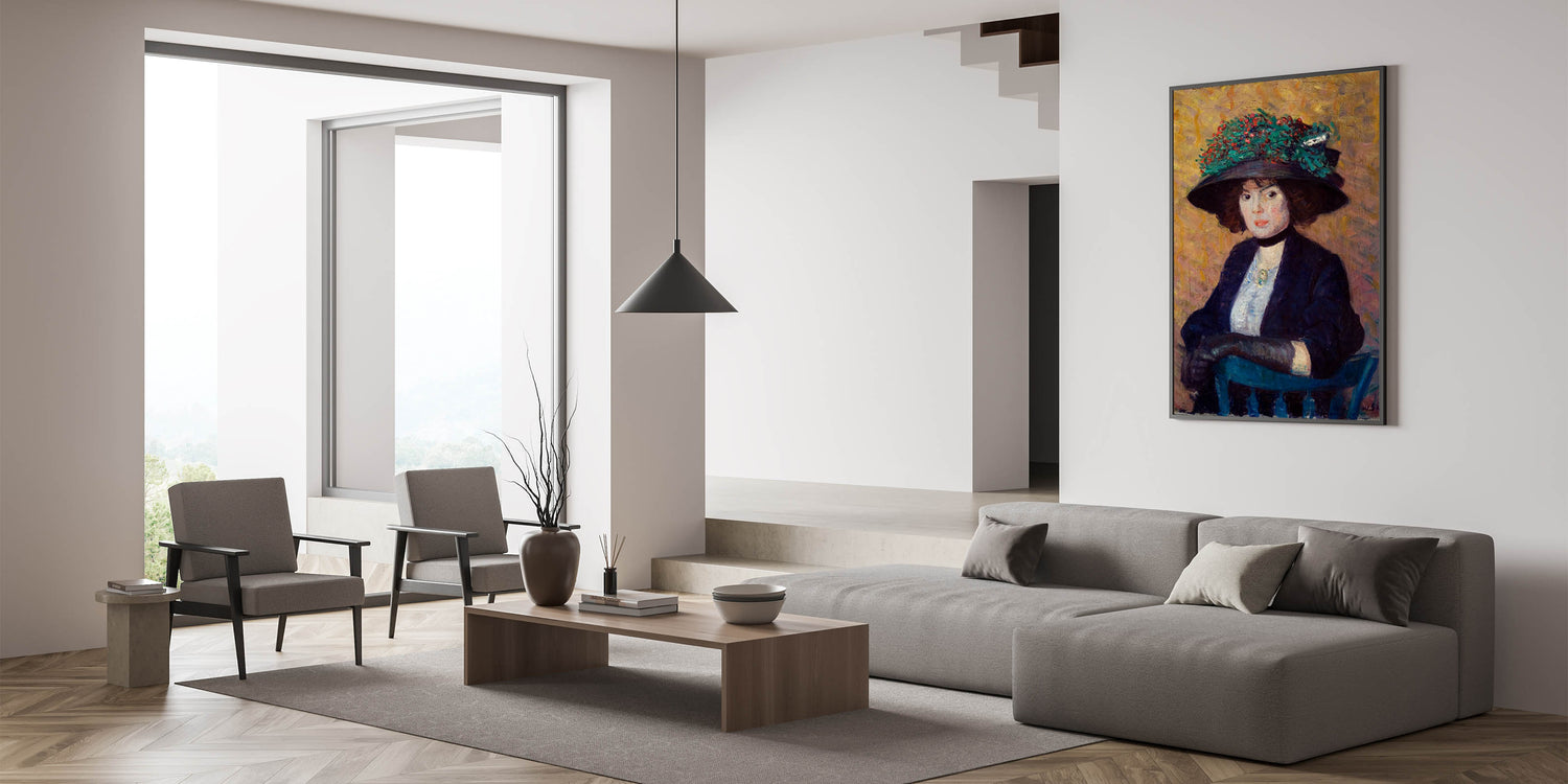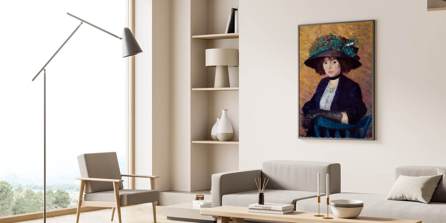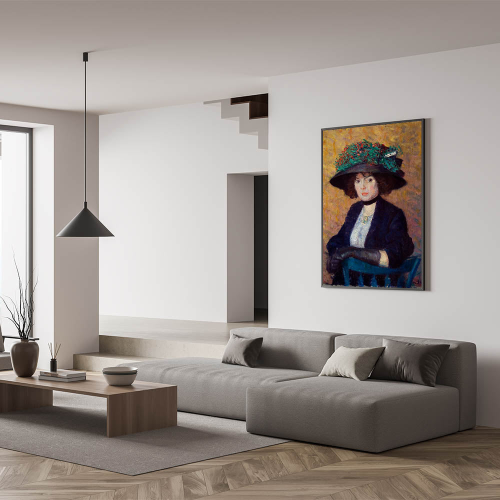 Modern Wall Art - Elegant Woman with Green Hat in Impressionist Style