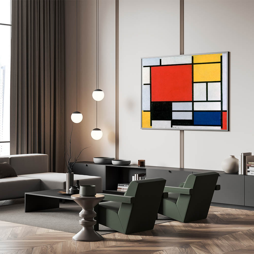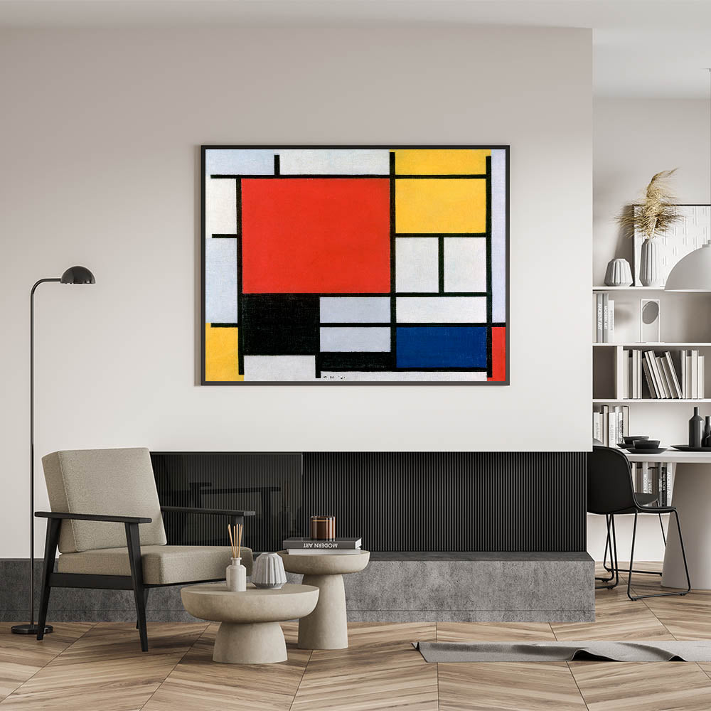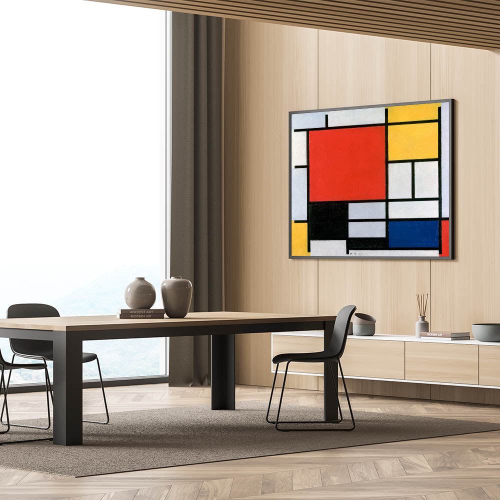 Elevate your space with the timeless elegance of Modern Wall Art, featuring Piet Mondrian’s masterpiece "Composition with Red, Yellow, Blue, and Black" (1921). This iconic artwork epitomizes the De Stijl movement, with its bold primary colors, clean black lines, and balanced geometric shapes. Perfect for fans of abstract modern art, this piece adds sophistication and energy to any setting.