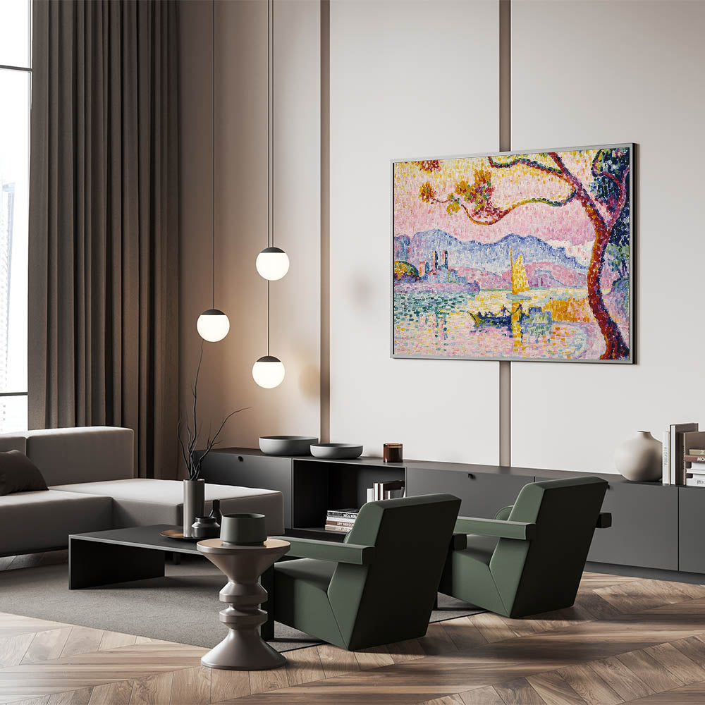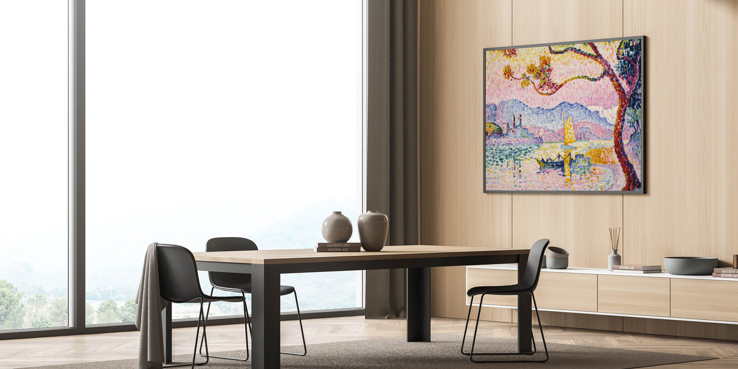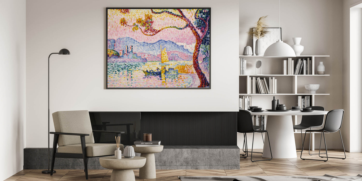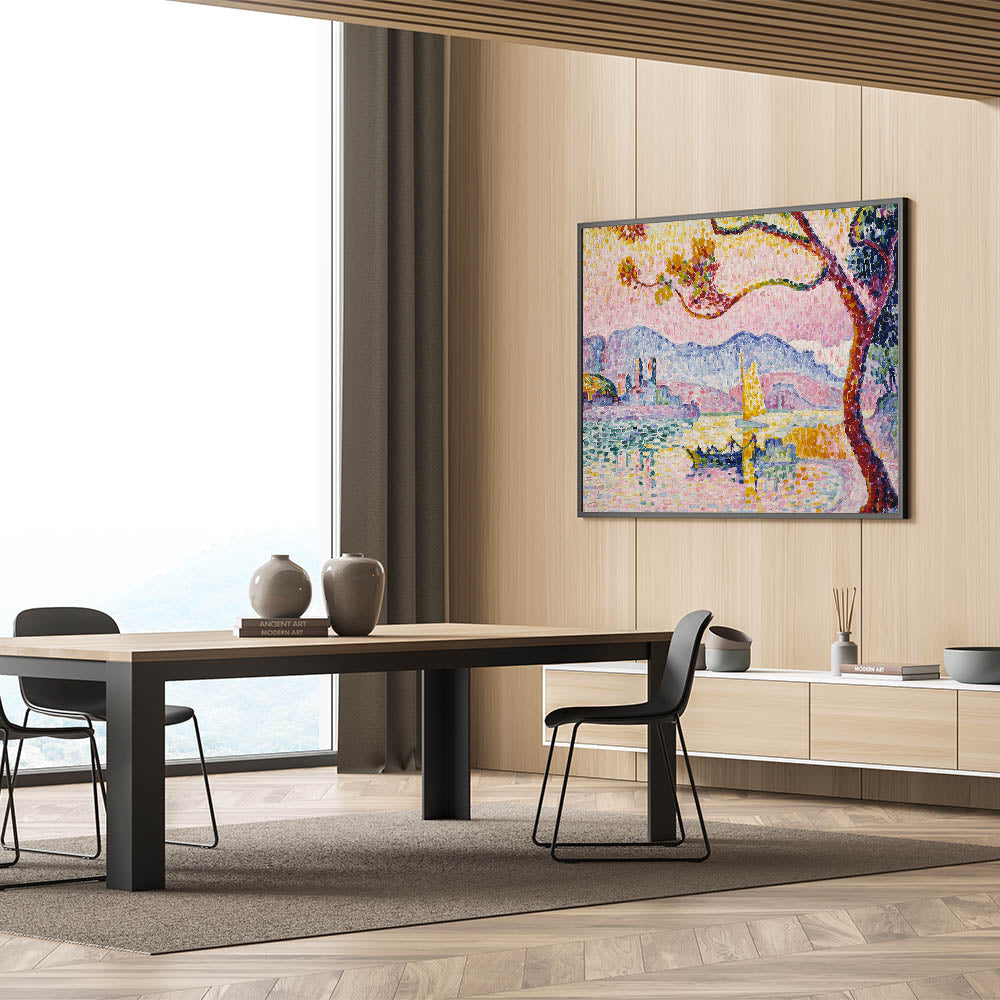 Bring the brilliance of Pointillism to your home with this Modern Wall Art piece, inspired by Paul Signac’s Antibes. This stunning artwork captures the Mediterranean coastline with vibrant, mosaic-like brushstrokes of pinks, blues, and yellows. Perfect for brightening up contemporary or eclectic interiors, this piece exudes warmth and artistic charm.