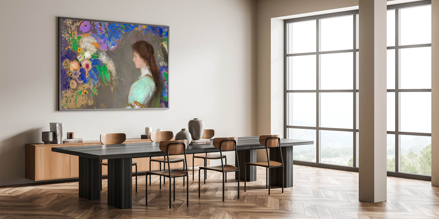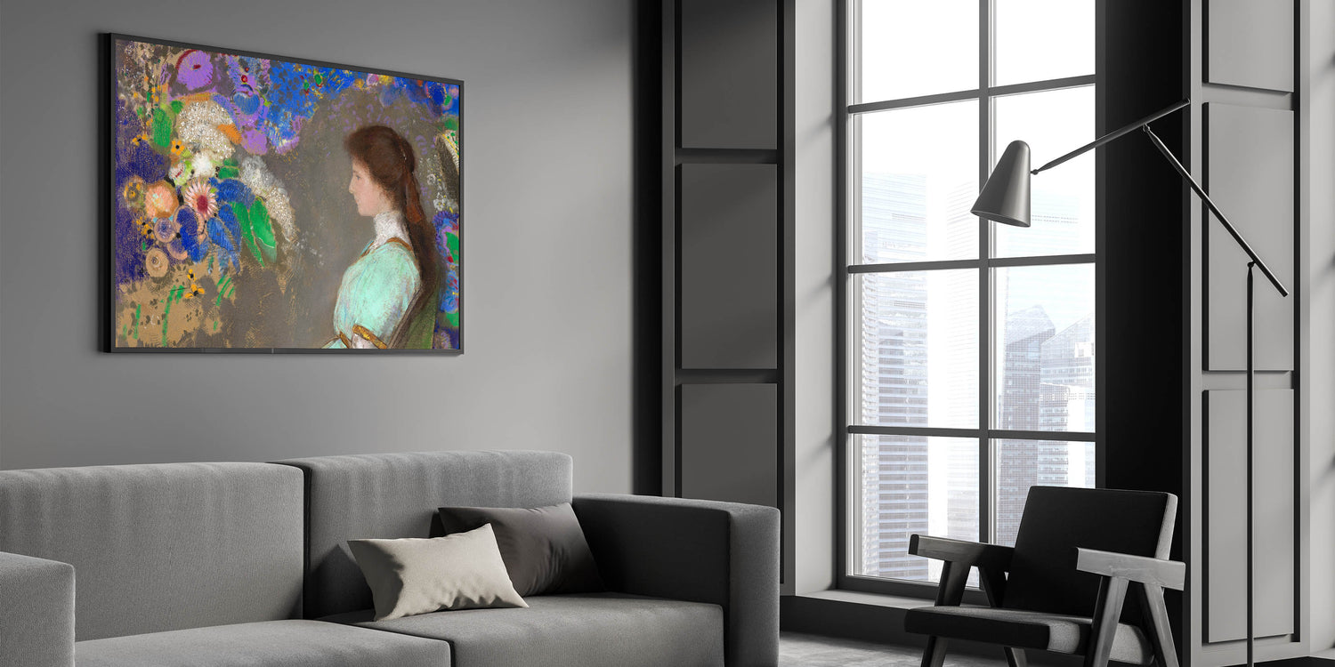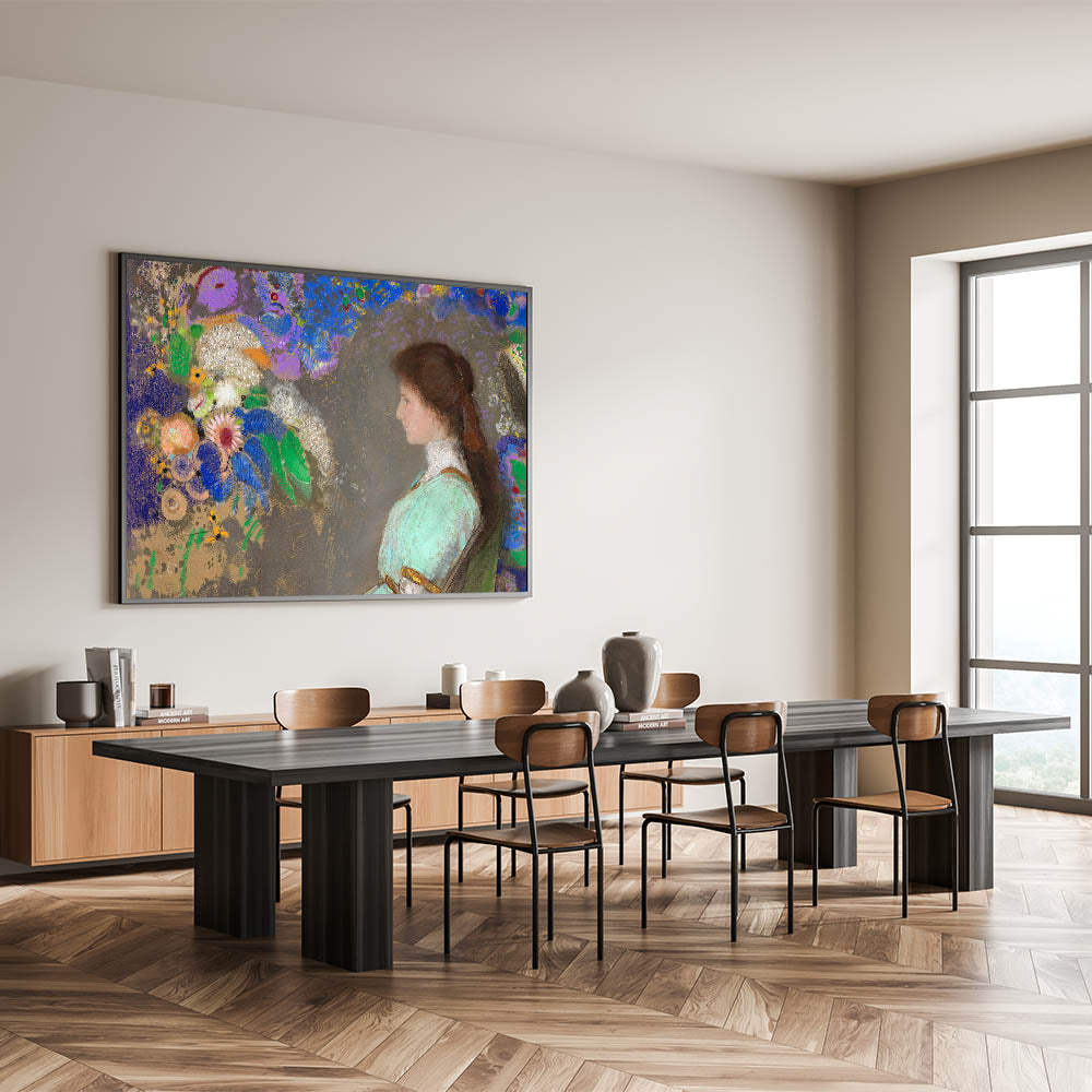 - Artistic elegance: A stunning combination of portraiture and vibrant floral artistry, perfect for modern and classic interiors.