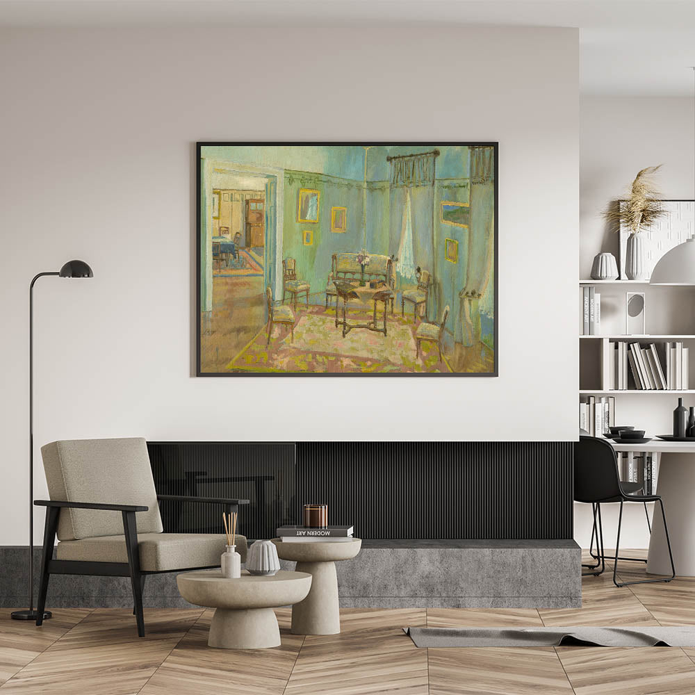 Transform your space with the tranquil elegance of this Modern Wall Art piece, inspired by Konštantín Bauer’s Room Interior. This captivating artwork offers a glimpse into a serene and refined interior setting, showcasing soft blues, warm pastels, and intricate furniture details. Bauer’s painterly style adds a touch of nostalgia, making this piece perfect for classic and modern interiors alike.