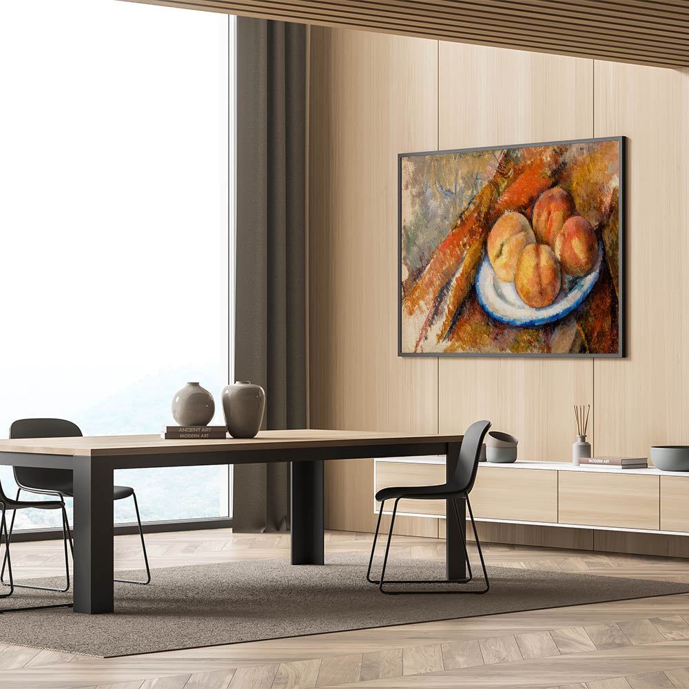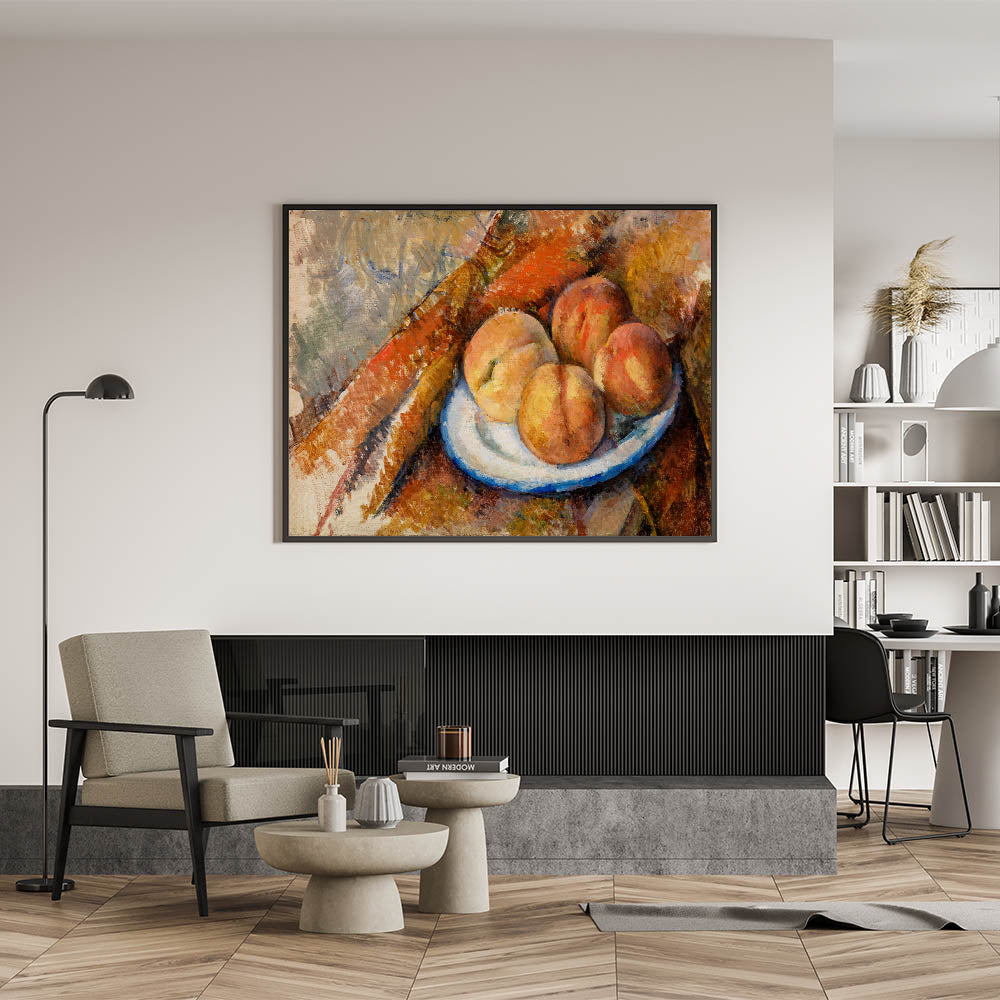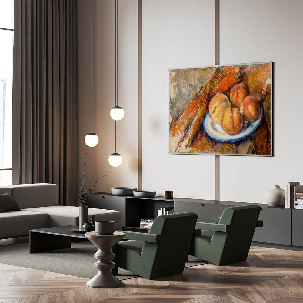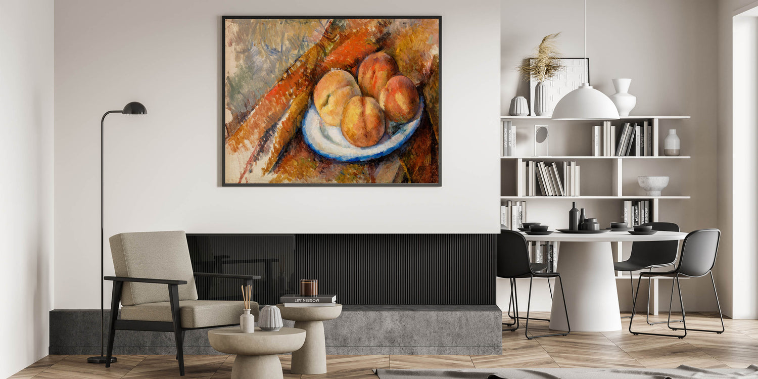 Modern Wall Art: Still Life of Peaches on Plate with Warm Tones