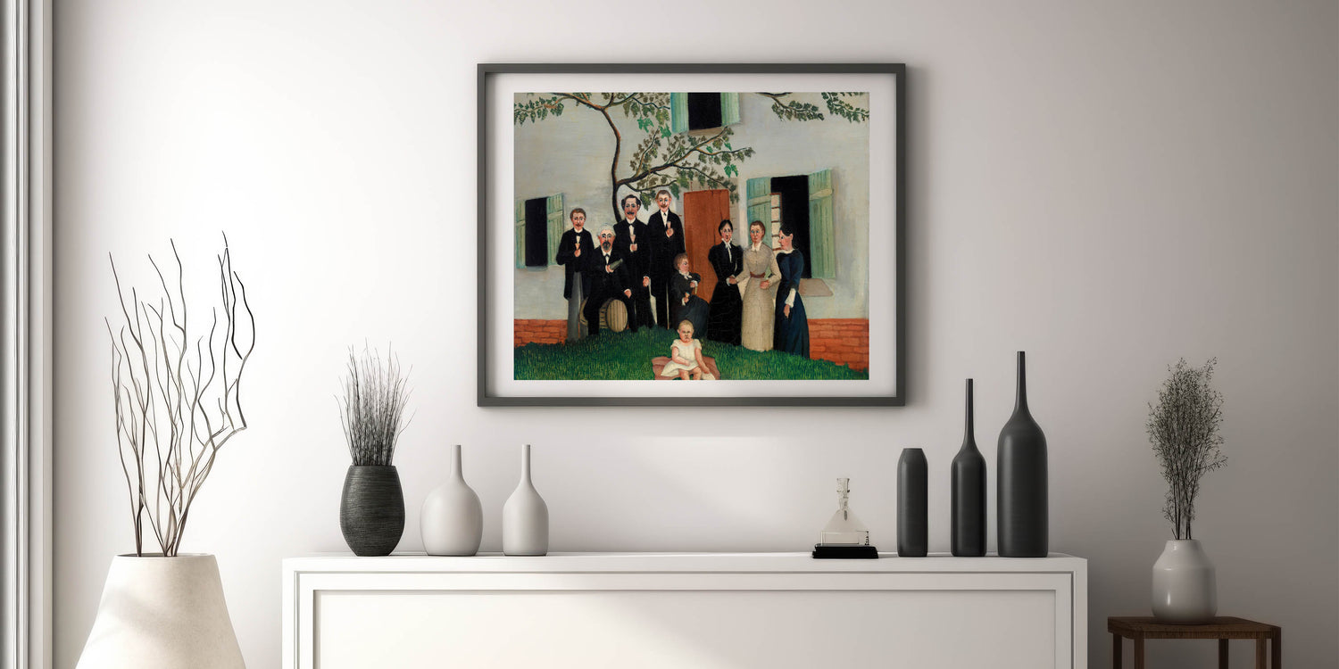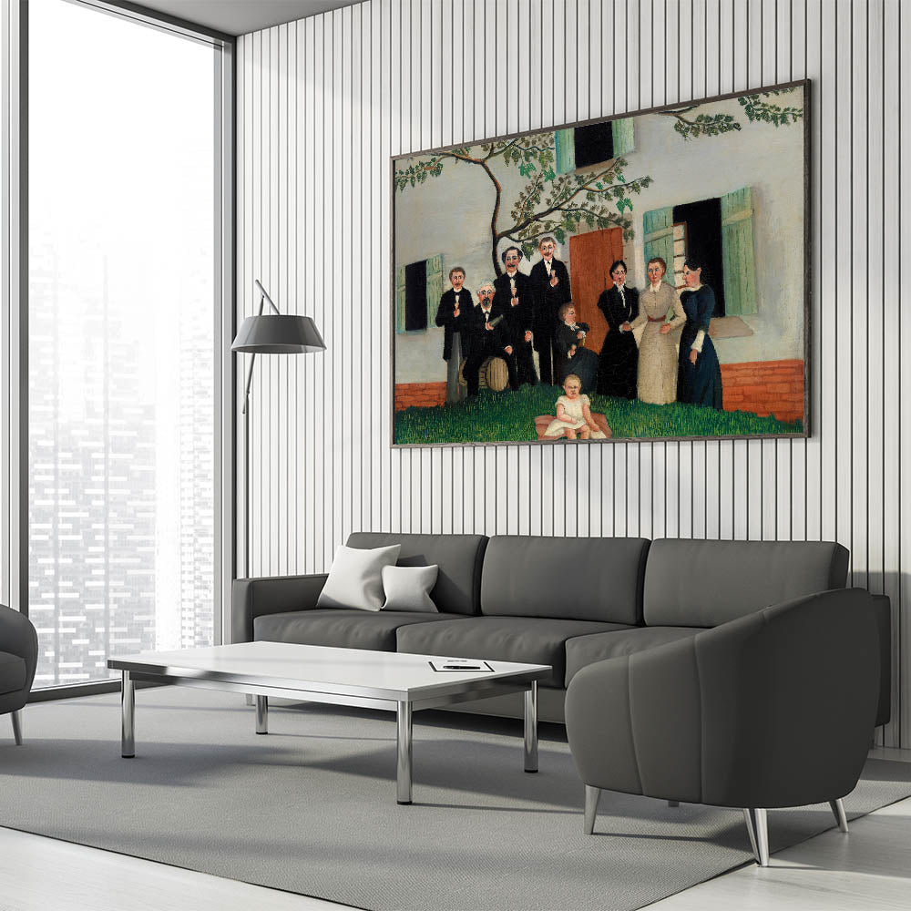 Celebrate the charm of family and tradition with this Modern Wall Art piece, inspired by Henri Rousseau’s The Family (ca. 1890–1900). This unique artwork features a heartwarming depiction of a family gathering, captured with Rousseau’s signature naïve style. The detailed greenery and soft tones make this piece a perfect addition to modern and vintage-inspired interiors.