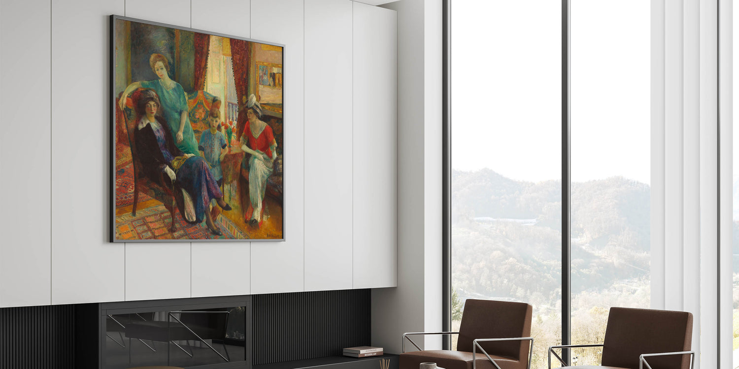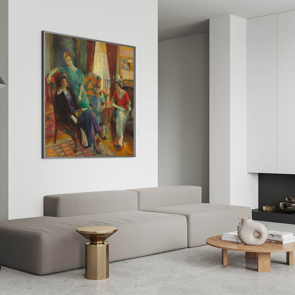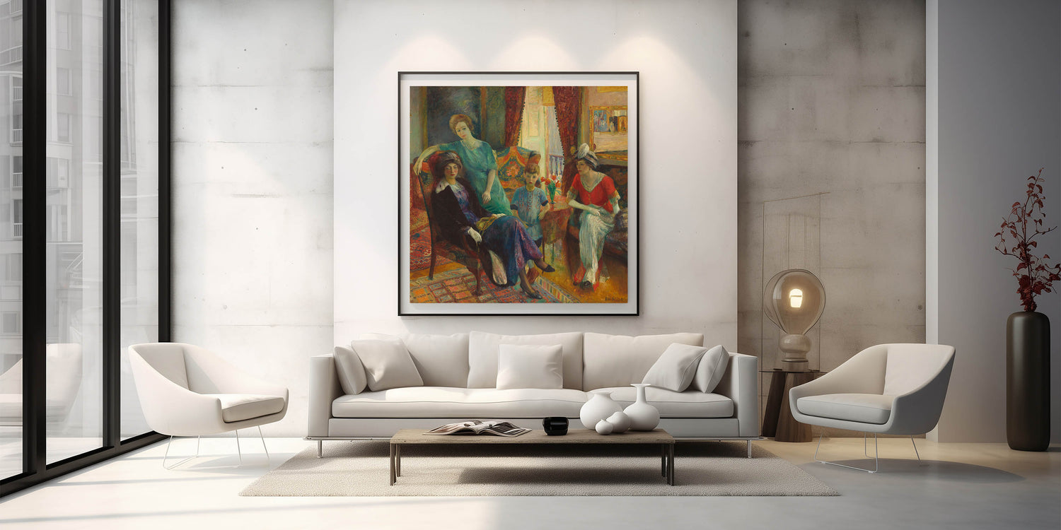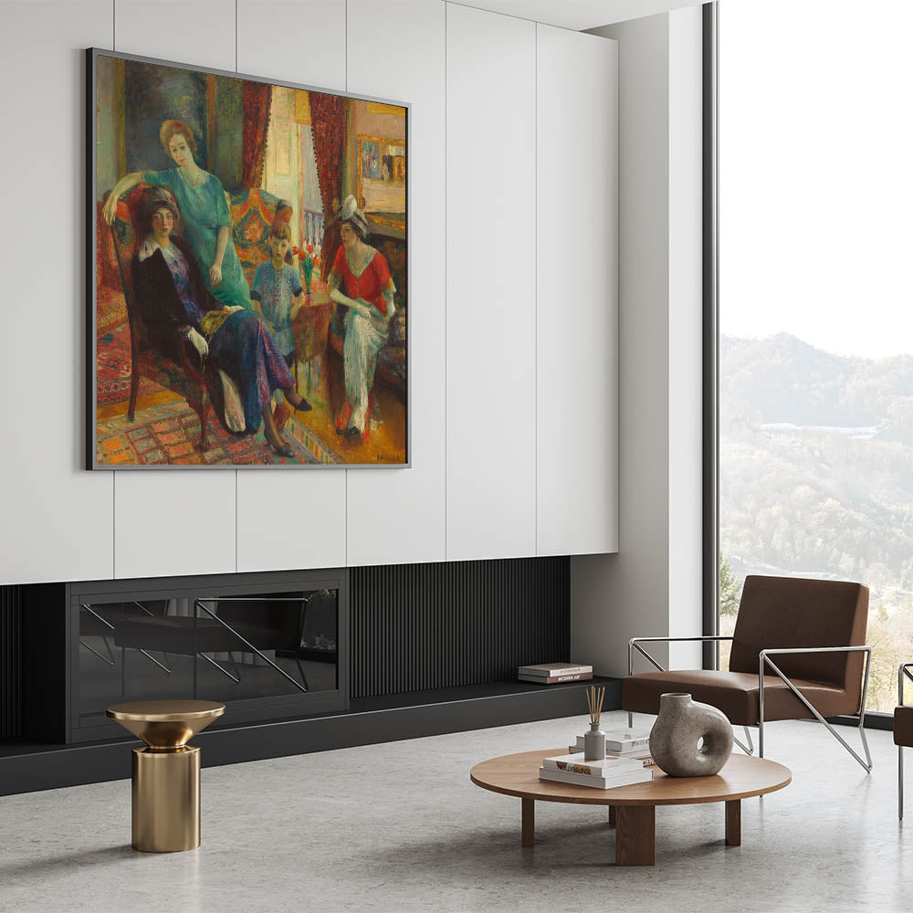 Add timeless elegance to your space with Modern Wall Art, featuring William Glackens’ "Family Group" (1910–1911). This vibrant masterpiece captures an intimate moment in a richly detailed interior, blending warm colors, intricate patterns, and expressive figures. A celebration of family life and artistic sophistication, this piece is perfect for lovers of unique modern art and classic charm.