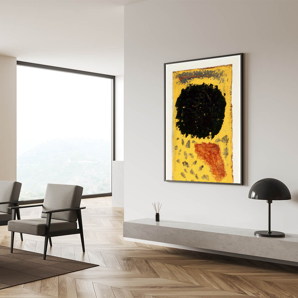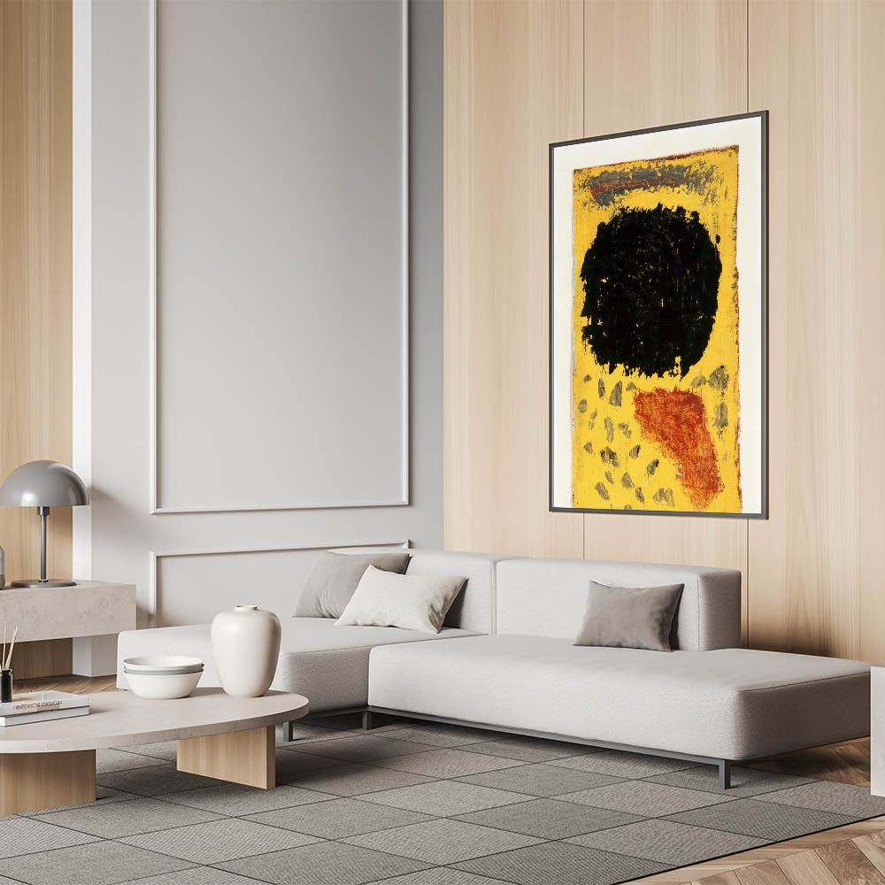 Dive into the expressive abstraction of Paul Klee with Black, Still in Place (1940). This intriguing artwork combines bold textures and dynamic brushstrokes to create a powerful composition. The vibrant yellow background contrasts dramatically with deep black and earthy red tones, evoking both energy and introspection. Klee’s innovative approach to form and color makes this piece a standout in modern art collections.