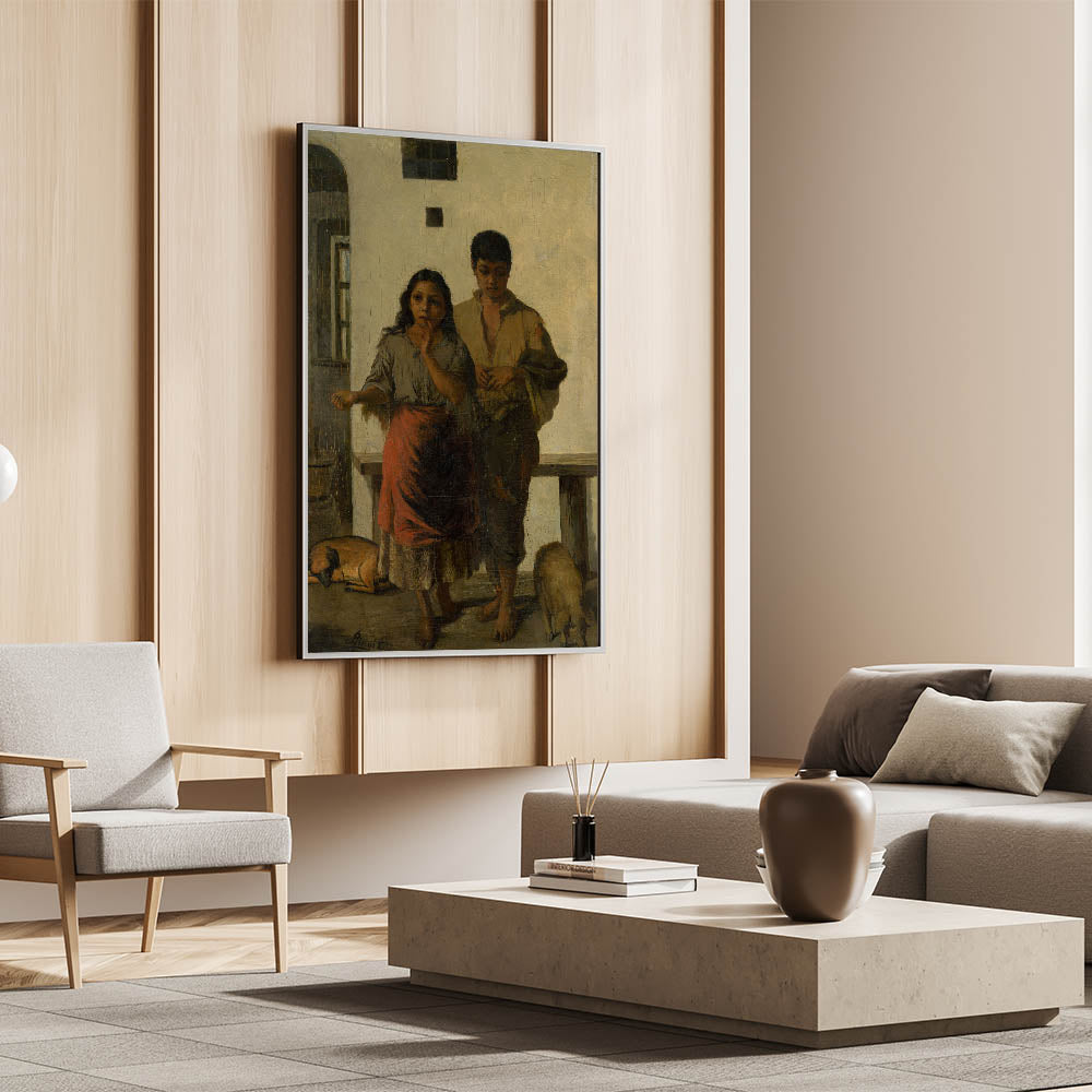 Realism Art Print - A Gypsy with a Gypsy Woman, Rustic Canvas Art