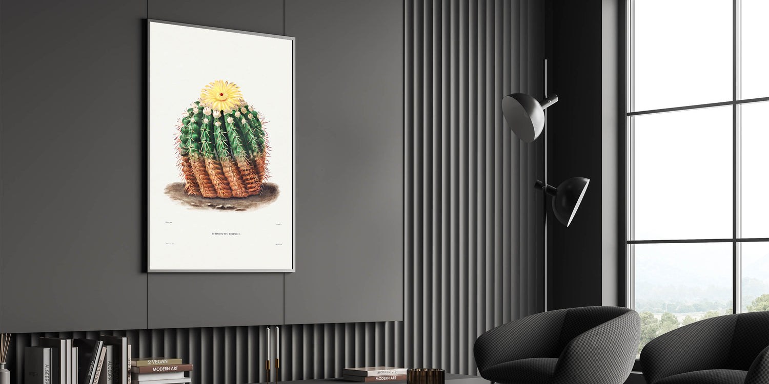 This historic and cultural wall décor is ideal for plant lovers and art enthusiasts alike. The Golden Barrel Cactus illustration brings a fresh and uplifting aesthetic to your interior while showcasing the timeless elegance of Romanticism.
