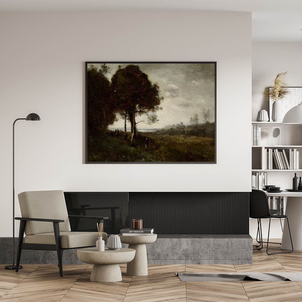 Transport yourself to the peaceful countryside with Romanticism style wall art through A Torrent at Romagnes by Jean-Baptiste-Camille Corot. This evocative painting captures the serenity of a rural landscape, combining shadowy trees and distant hills with Corot’s signature atmospheric touch. The interplay of light and shadow, along with the muted color palette, creates a calming yet powerful depiction of nature, reflecting the Romantic era’s fascination with the sublime and tranquil aspects of the natural world.