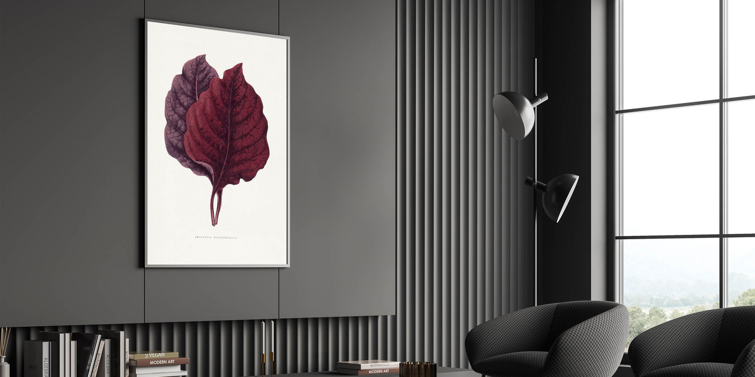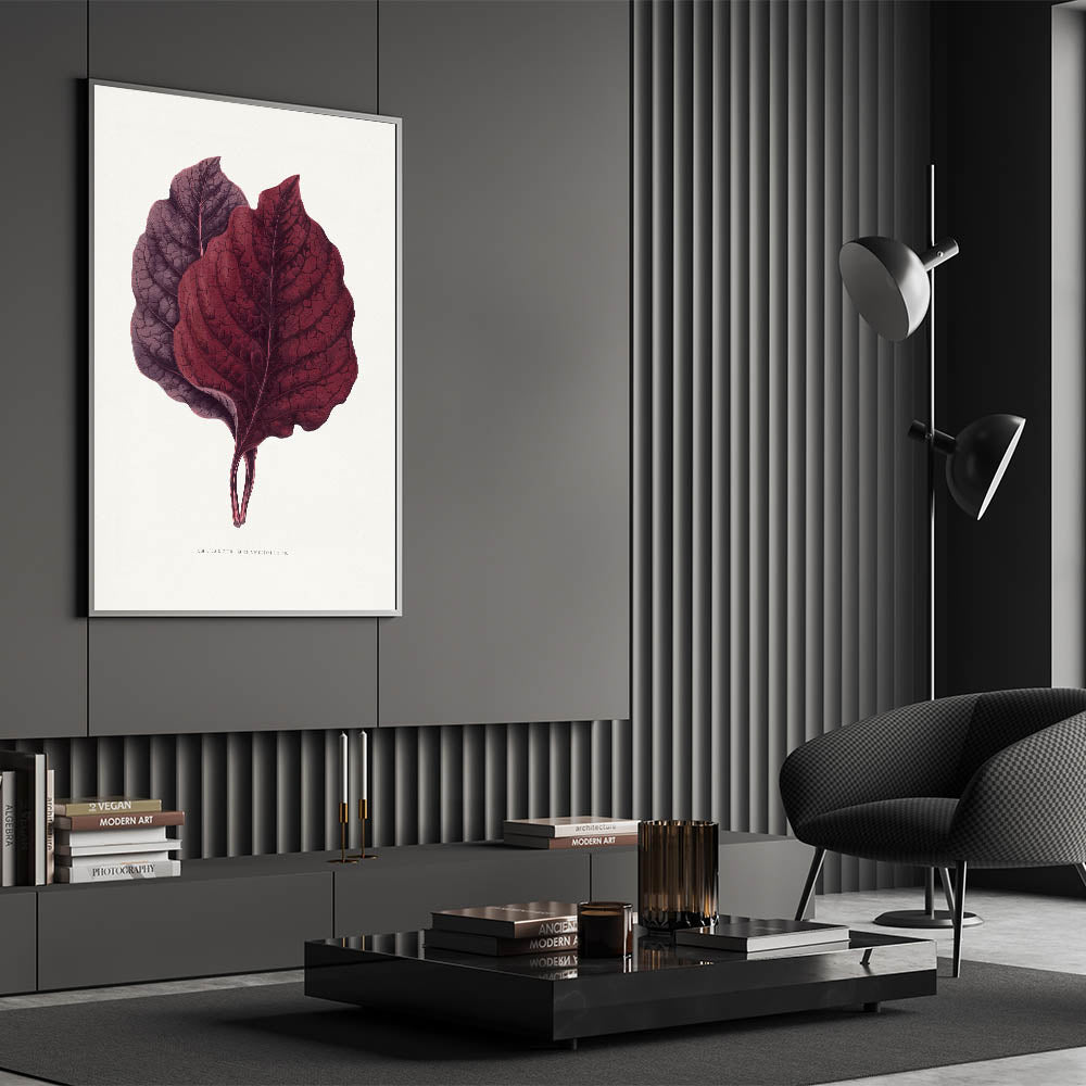 Infuse your space with the vibrant beauty of nature through this Romanticism style wall art featuring the Amarantus Melancholicus leaves. This stunning botanical illustration, with its deep red and rich plum tones, captures the intricate vein patterns and organic elegance of the leaves. Originally crafted in the 19th century, this piece perfectly exemplifies classic Romantic paintings, combining artistic beauty with scientific precision. A timeless addition to historic and cultural wall decor, it brings both sophistication and warmth to any interior.