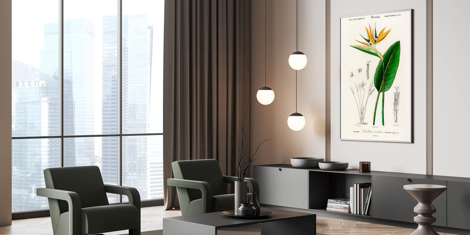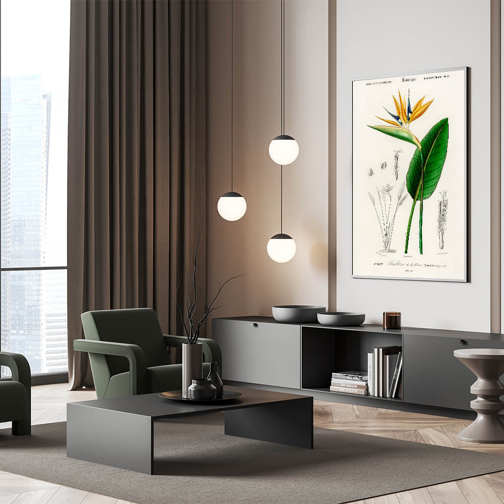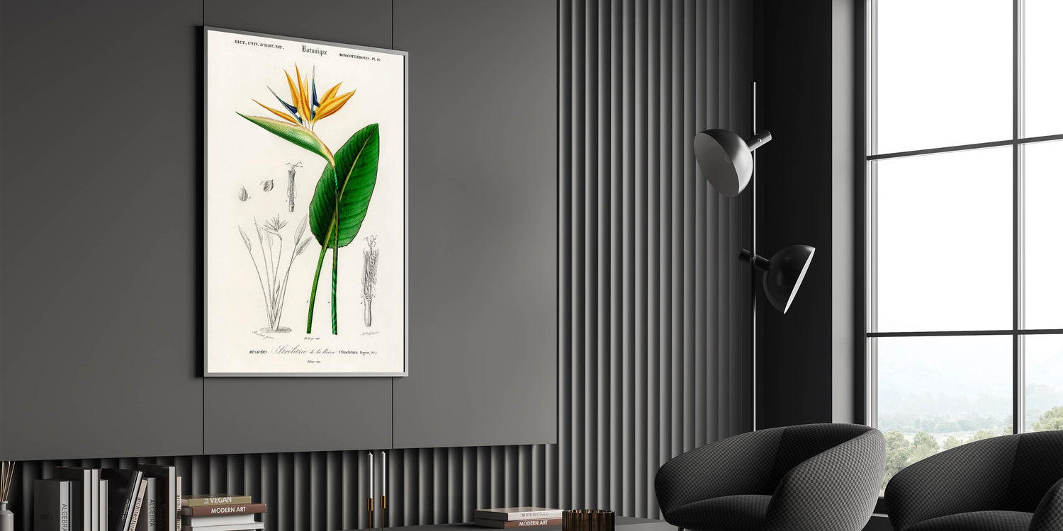 - Detailed botanical illustration: Captures the vibrant Bird of Paradise in stunning precision.