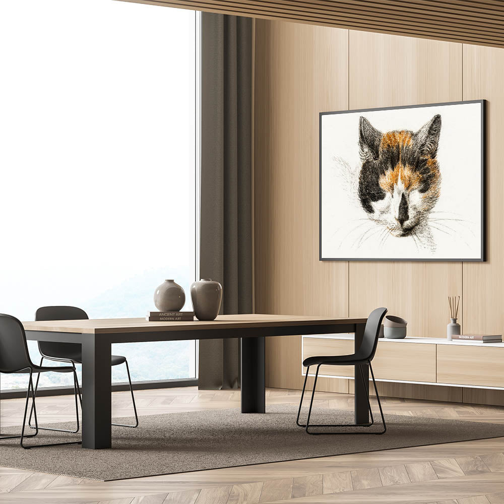 This artwork highlights the Romantic era's focus on emotion and the natural world, creating a sense of calm and connection. Whether placed in a cozy nook or a prominent gallery wall, Head of a Calico Cat with Closed Eyes adds a timeless elegance to your space.